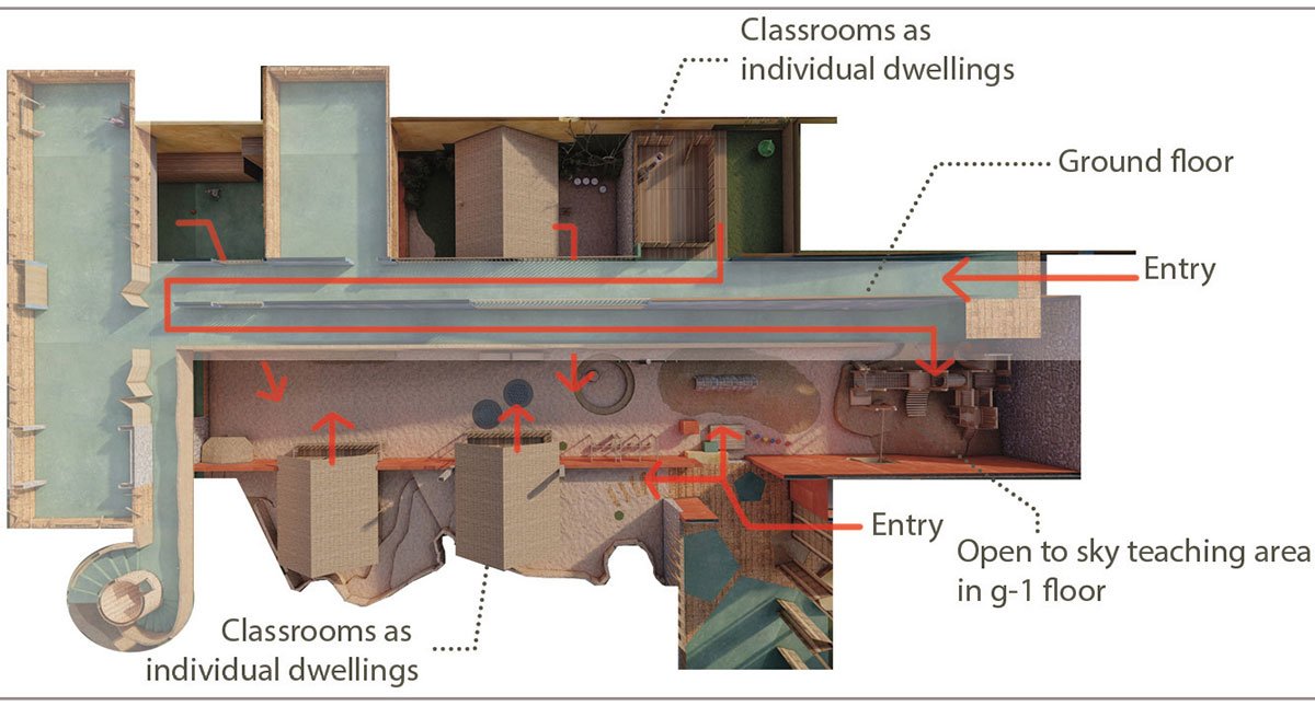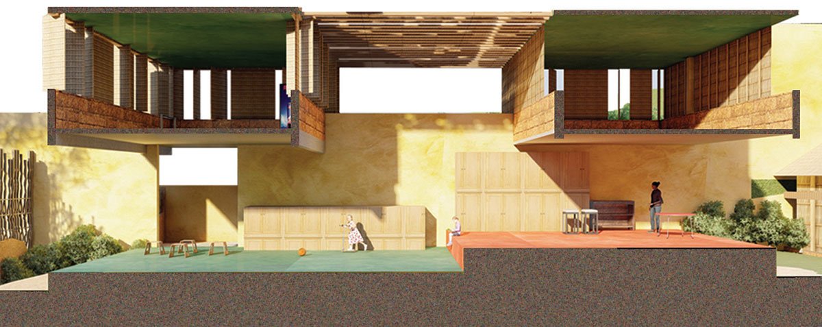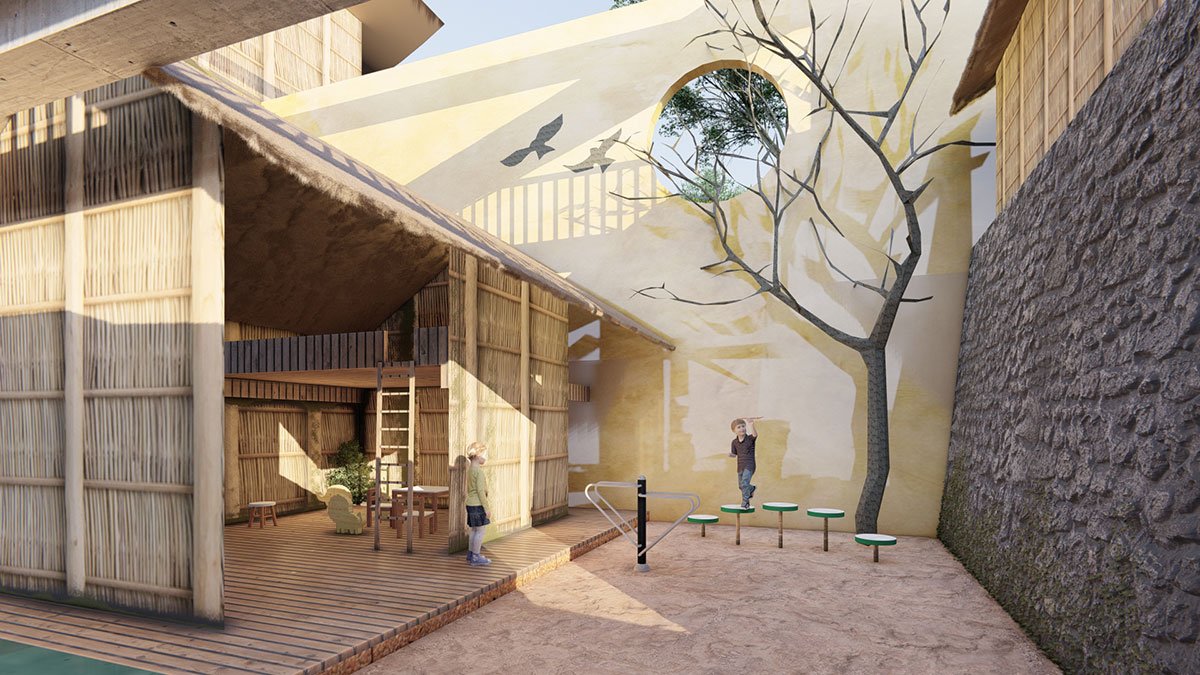 Child-Centric Design: The design acknowledges that children perceive and interact with spaces differently than adults. It prioritizes creating an environment that resonates with a child’s imagination, curiosity, and playfulness. This is achieved through the incorporation of elements like mud pits, workshops, and play areas that cater to a child’s instincts and preferences.