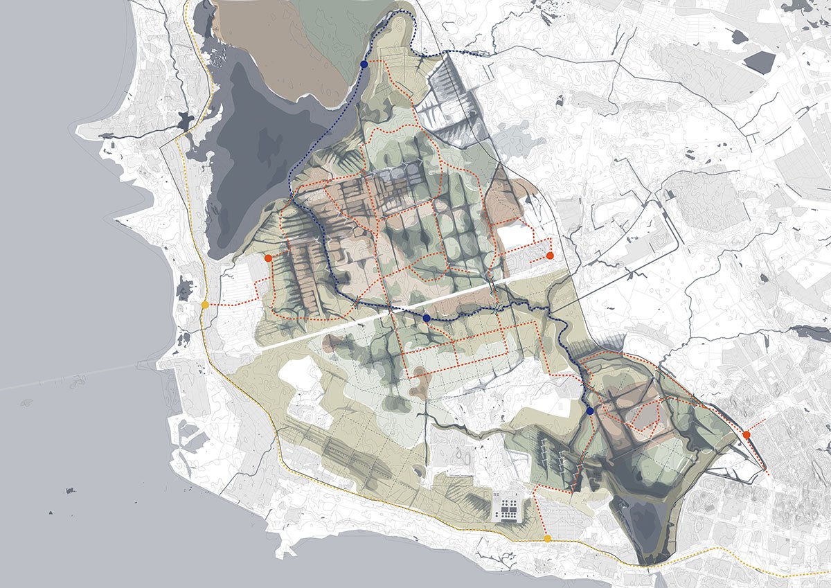 An important part of awareness and education is to show the beauty and richness of the landscape to the inhabitants of the city. This site and design complexity is expressed through the concept of speculative mapping, which takes the shape of a circular map. If the swamp and its beauty were presented to the visitors of the new nature reserve, people might learn to understand and appreciate it—quite the reverse of how this terrain has been perceived historically: sinister and dangerous.