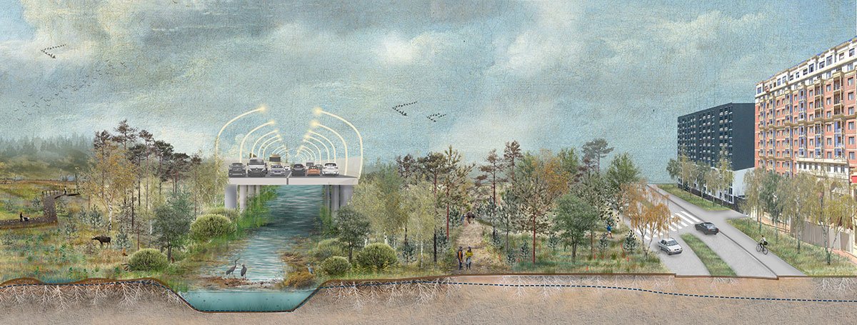 Excerpt: ‘The Palimpsest of Peatlands’ is a Masters Design Thesis on Regenerative Landscape Design by Elena Dobretsova from the Amsterdam Academy of Architecture that seeks to transform the existing template for nature reserves in Russia into a new national park on the outskirts of St. Petersburg, where nature and people can co-exist. It serves as a buffer between urban and rural environments, with renaturation strategies that create a variety of swamp types, each with its own distinct biosphere.