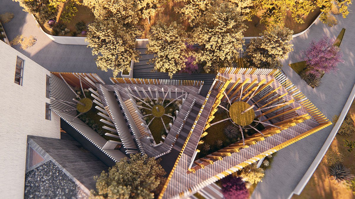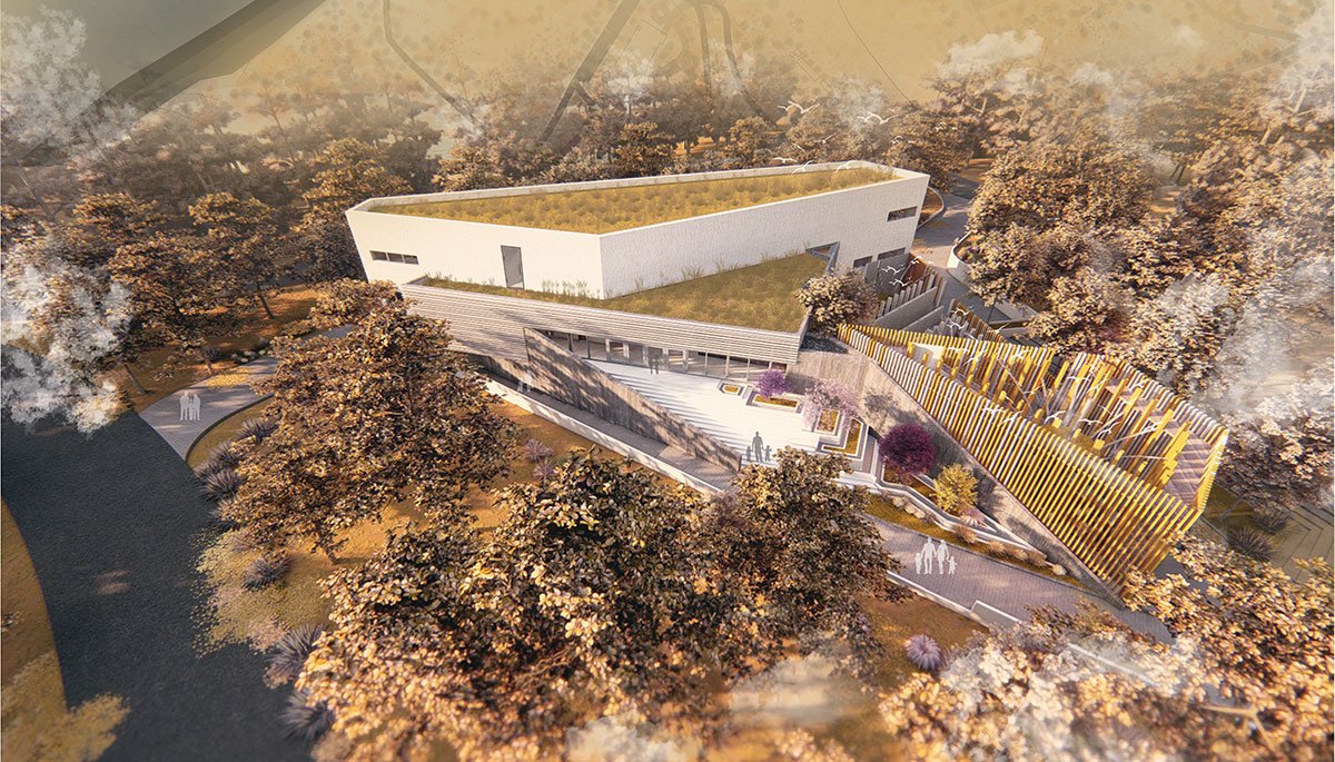 Due to its unique triangular shape, the building is ideally situated to provide breathtaking panoramic views of the mountain, Visegrád Bay, and Duna Bend. The building is divided into three sections: the exhibition and research block, the garden area and the lifting blocks, which start with external stairs and rest firmly on the ground.