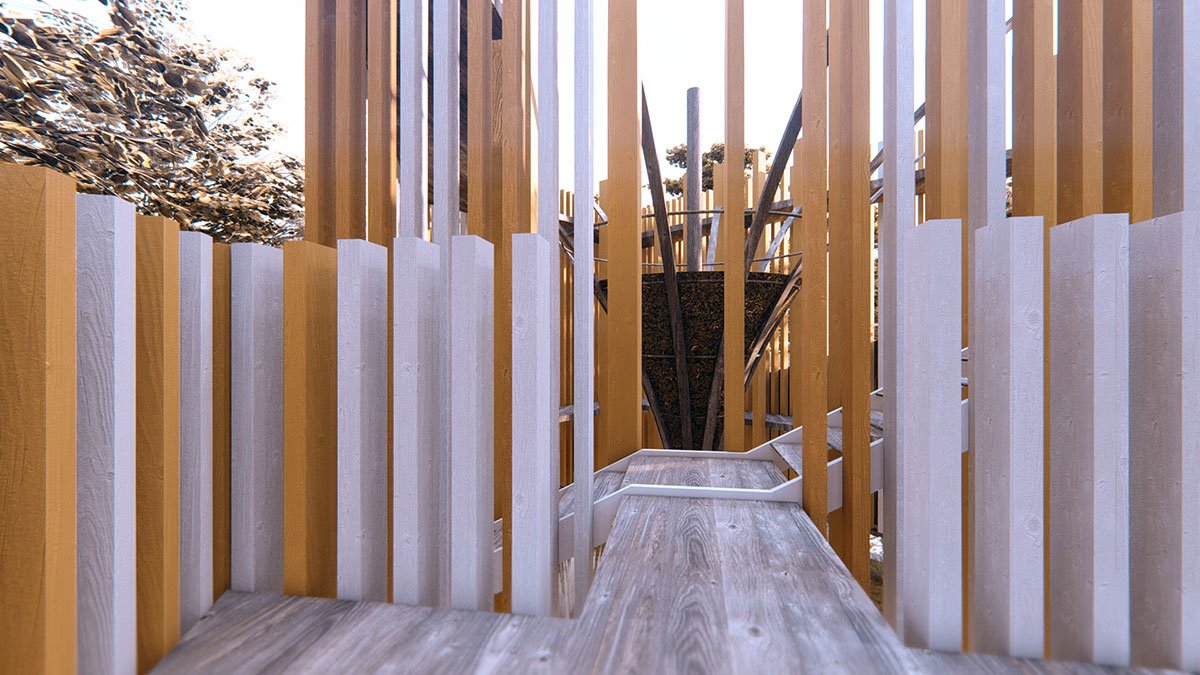 Introduction: The Second Nest is a project that aims to increase public awareness by studying and conserving riverbank plants and birds, as well as by planning holographically projected exhibitions that offer both auditory and visual experiences, in the context of Visegrád Bay Estuary, Hungary. The building’s main goal is to rehabilitate the ecosystem by restoring the food chain’s links. This idea is based on Edward Lorenz’s theory of the Butterfly Effect, which states that “the flap of a butterfly’s wings might ultimately cause a tornado.”