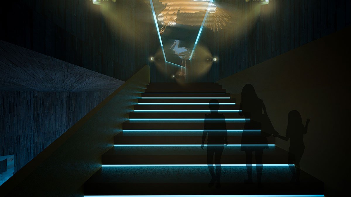 Visitors proceed to the next area after seeing the exhibits and models, where animations provide information about the bird species and groups that the centre studies. They walk into a pitch-black exhibition corridor that is lined with electronically modelled holograms of birds. They can examine the anatomy of birds, their methods of catching and digesting fish, their mate-finding and nest-building processes, the raising of their young, and their place in the Danube River’s food chain and ecological system.