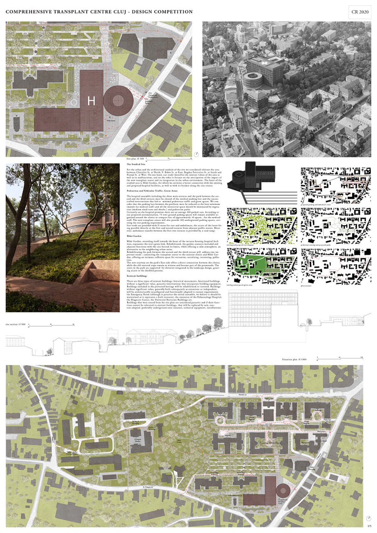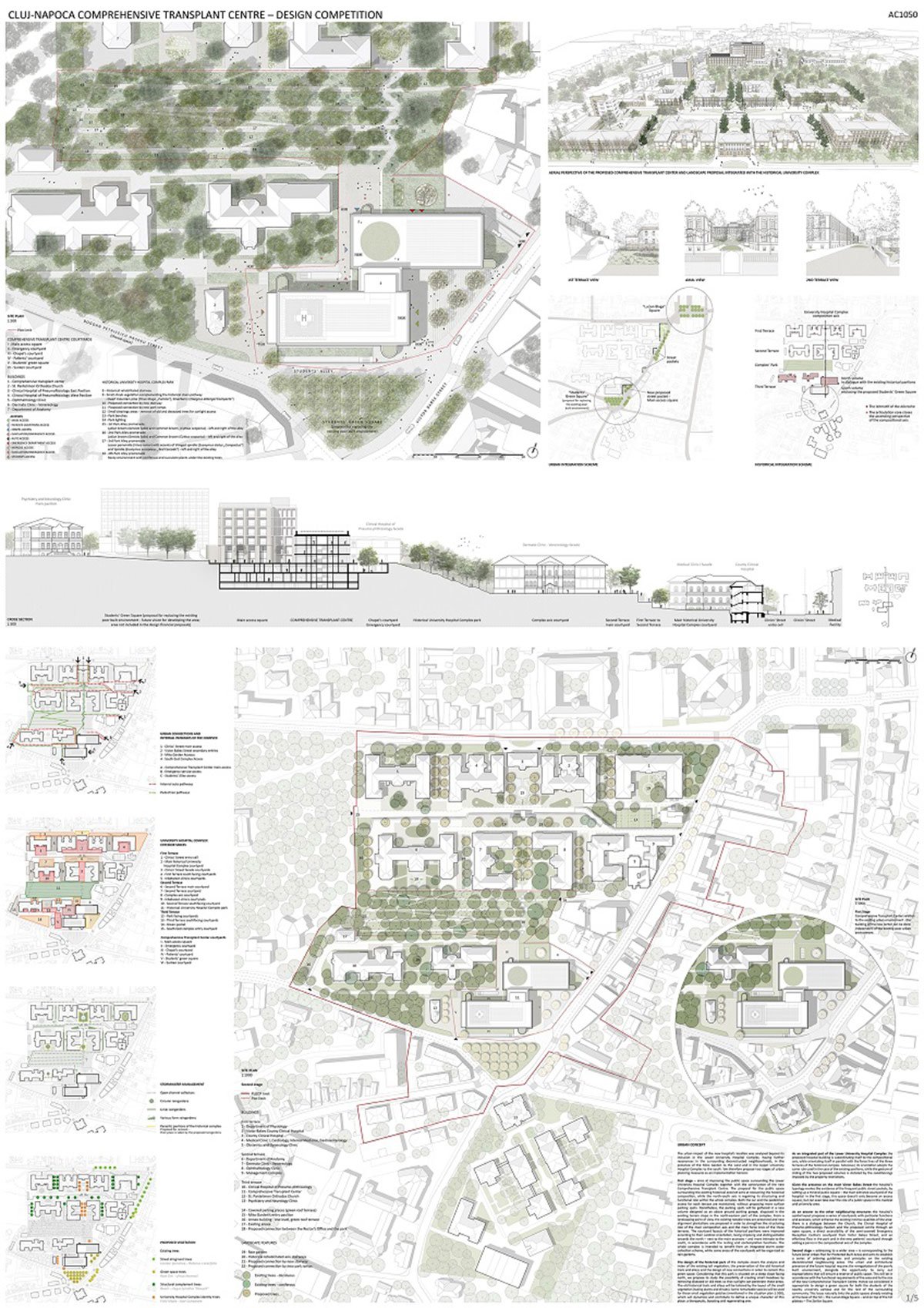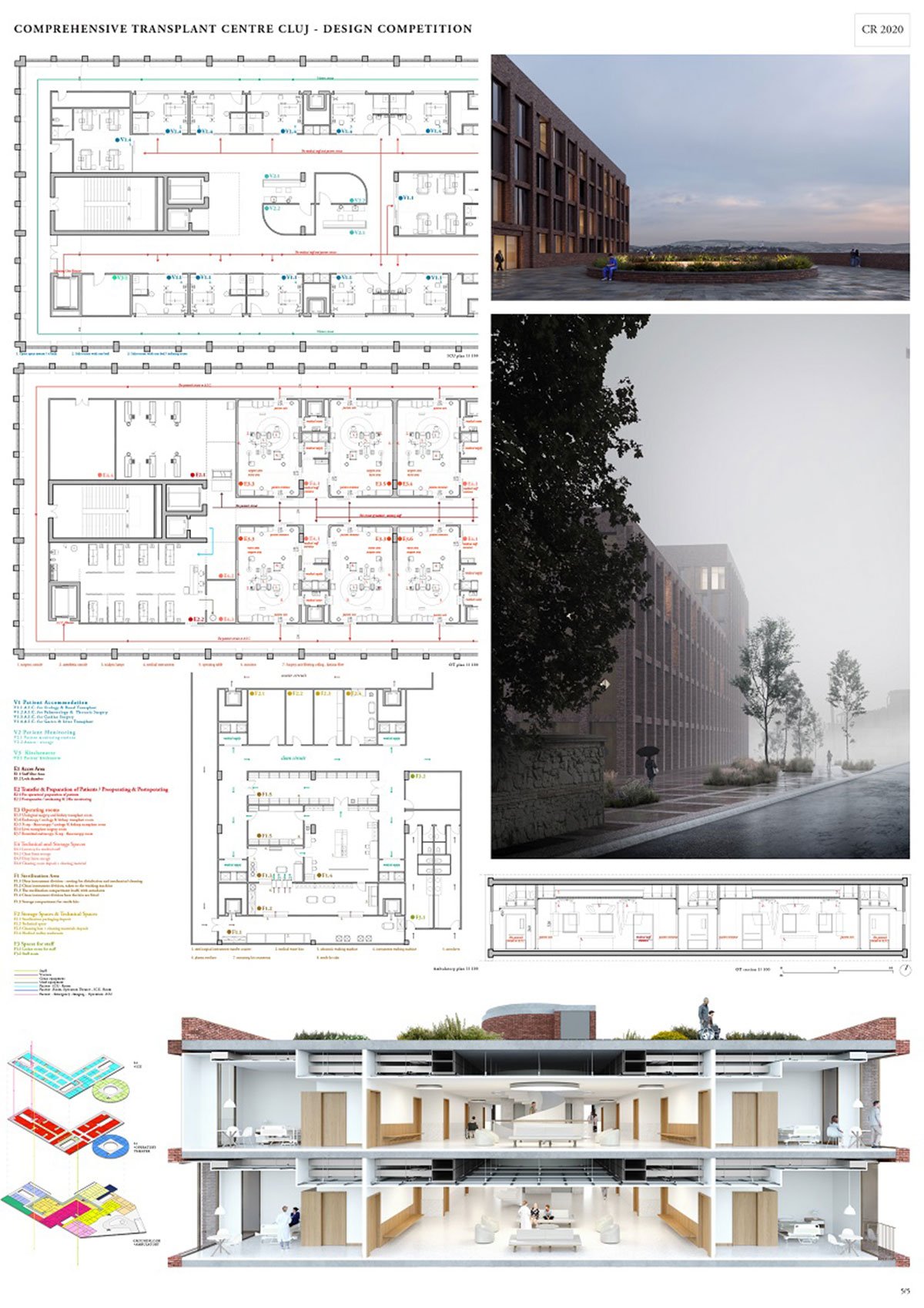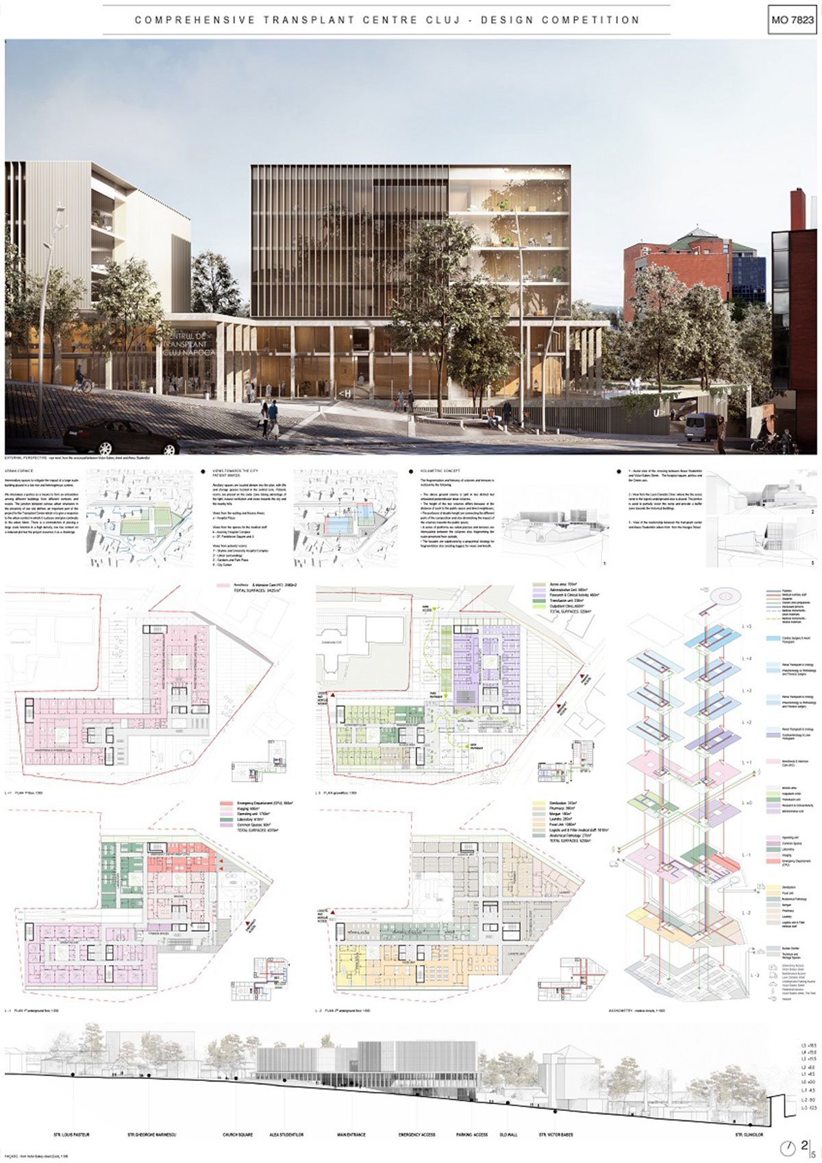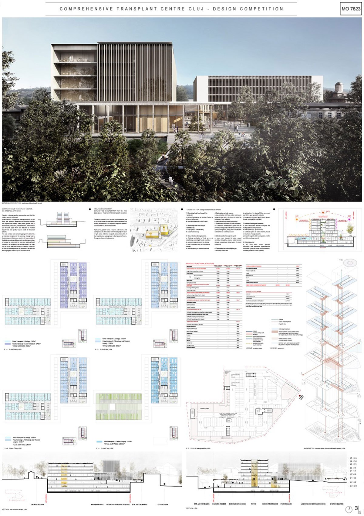 The competition seeks to select the best design solution for a Comprehensive Transplant Centre, located in the central area of Cluj-Napoca Municipality, within the University Hospital Complex. The ambition behind the competition is to design and execute the first transplant centre in the country that accommodates all the necessary facilities for four types of transplant: heart transplant, lung transplant, liver transplant and kidney transplant. Moreover, the future Comprehensive Transplant Centre is to provide an example of good practices both in terms of medical architecture and with regard to the insertion of a volume of contemporary architecture in a historical, heterogeneous site.
