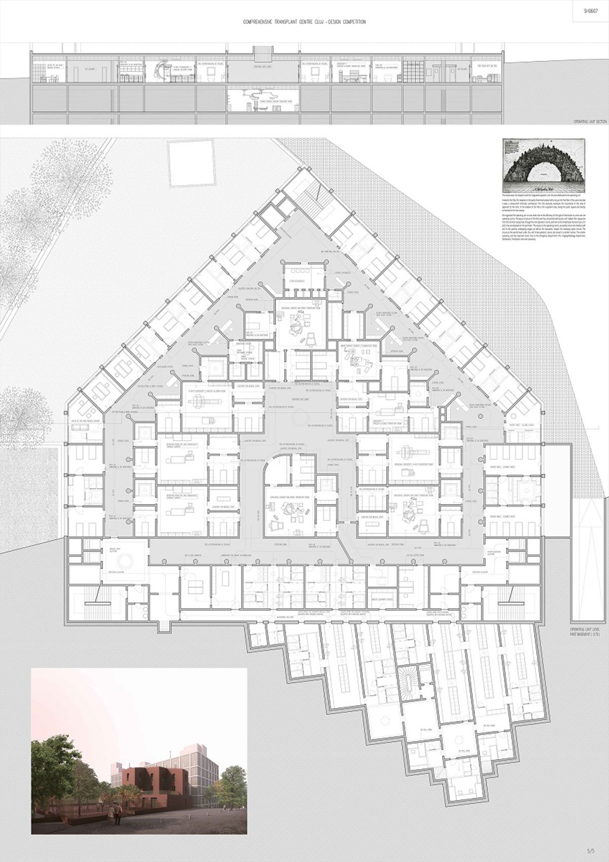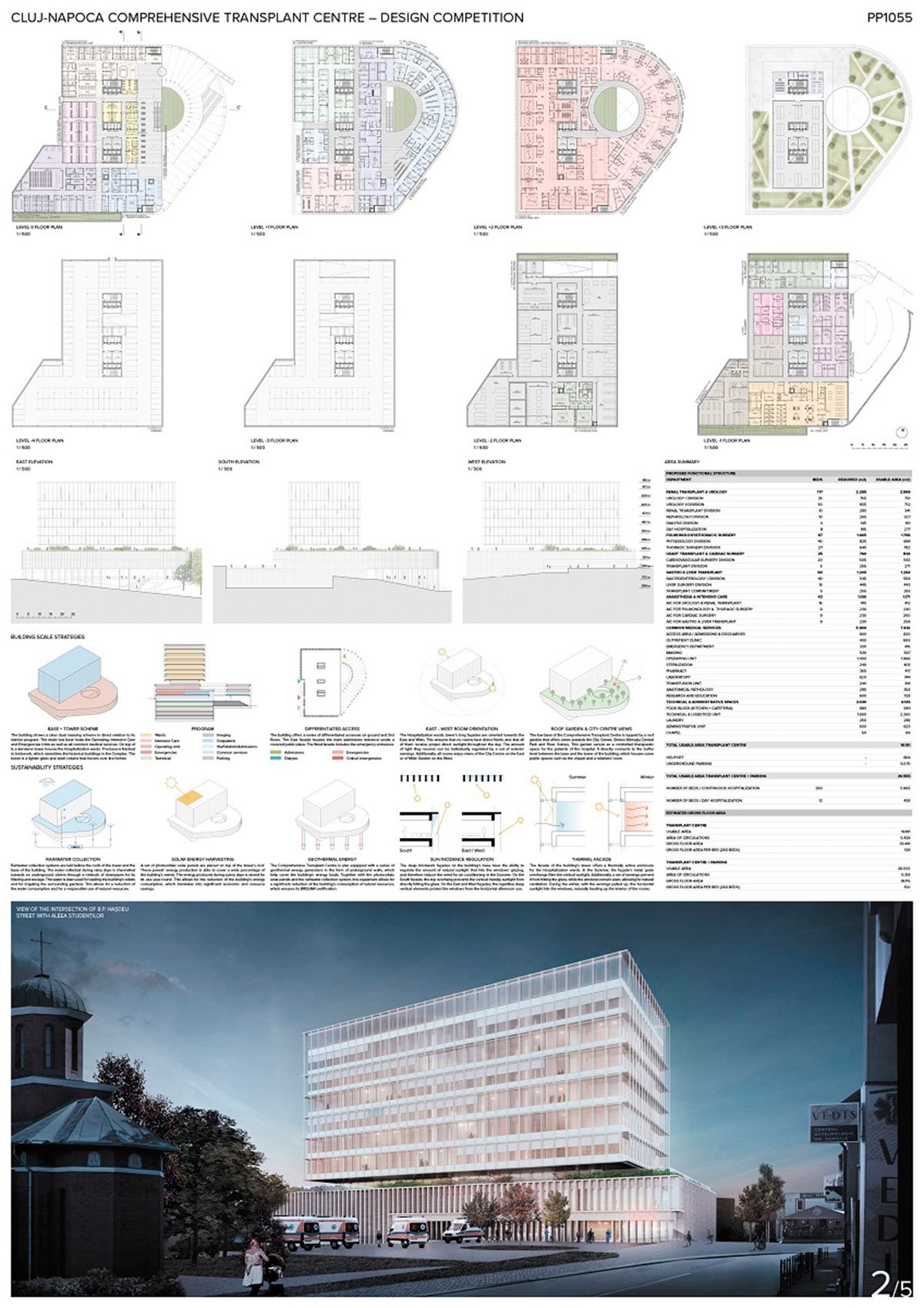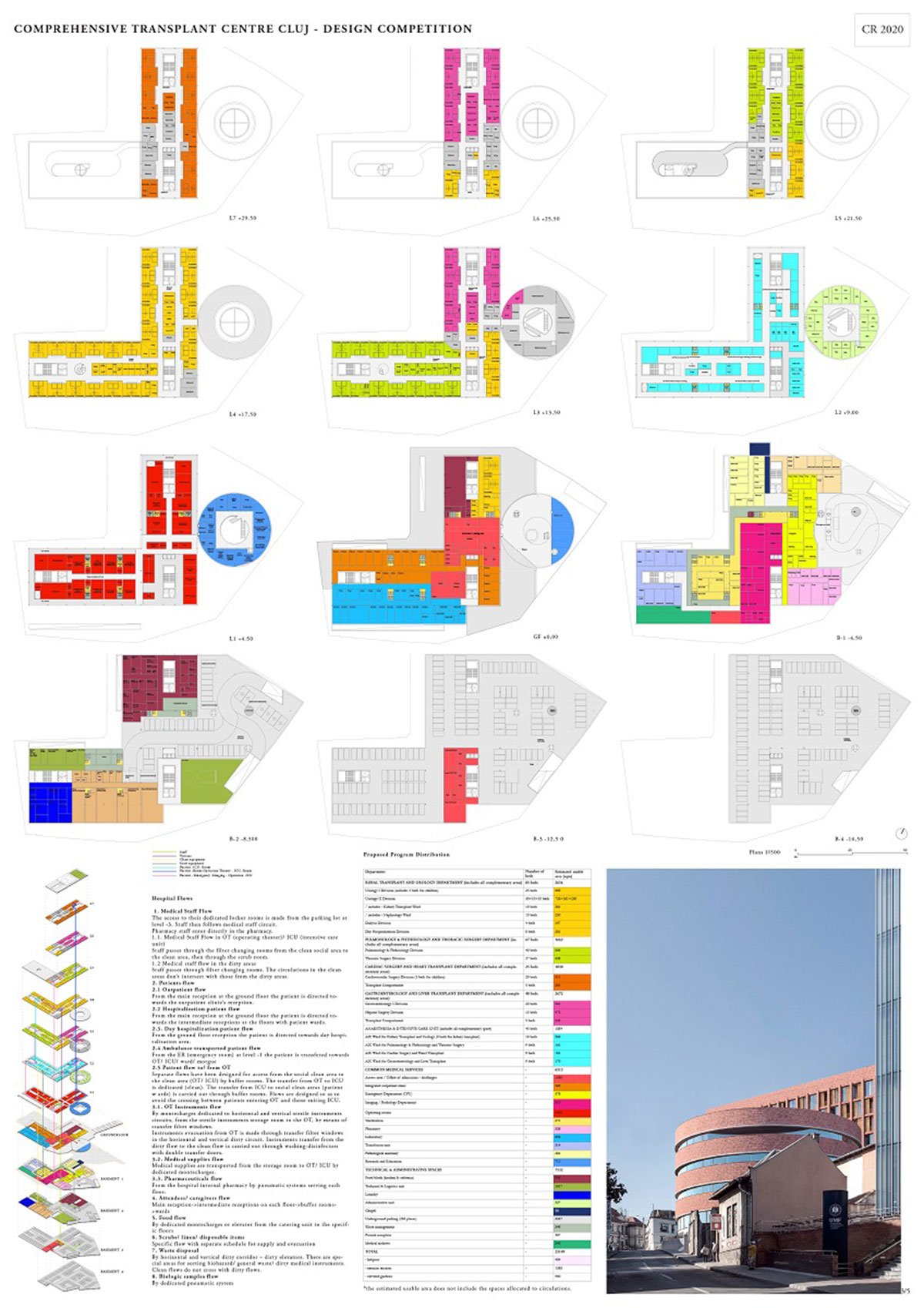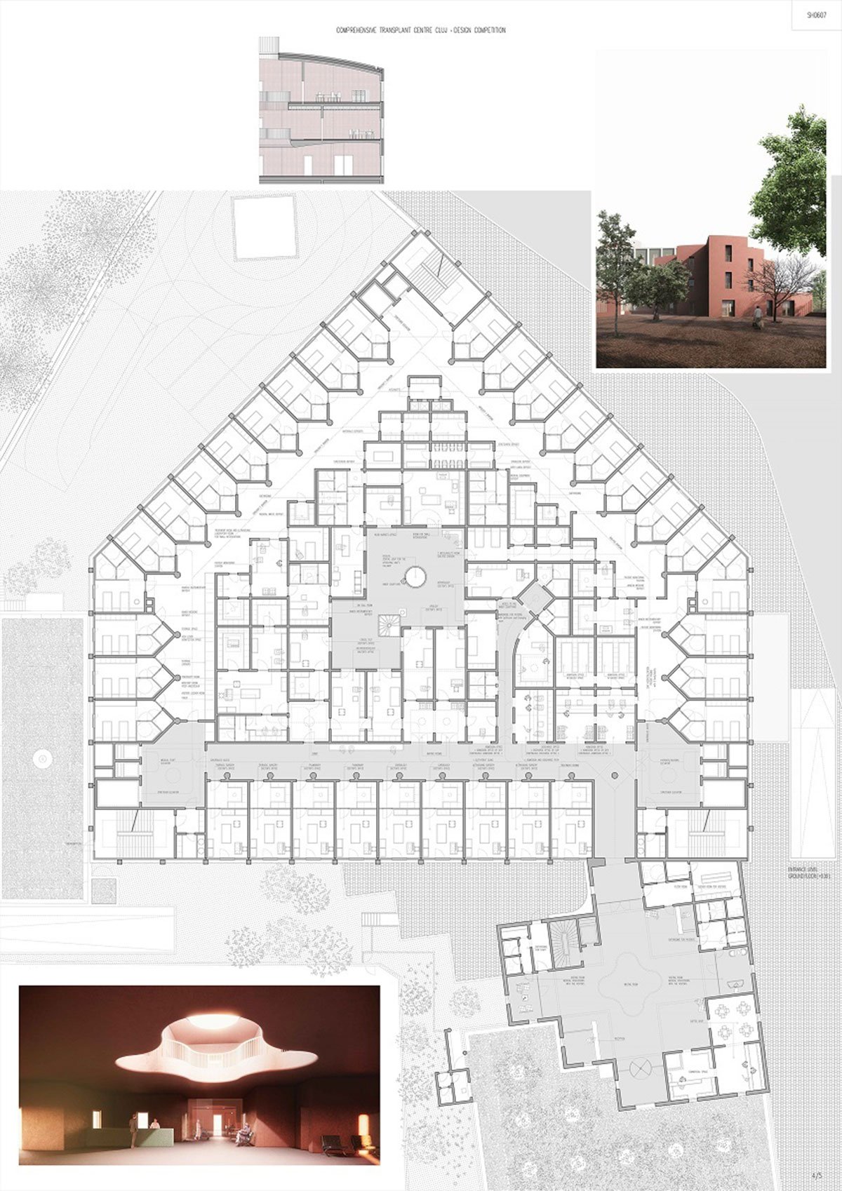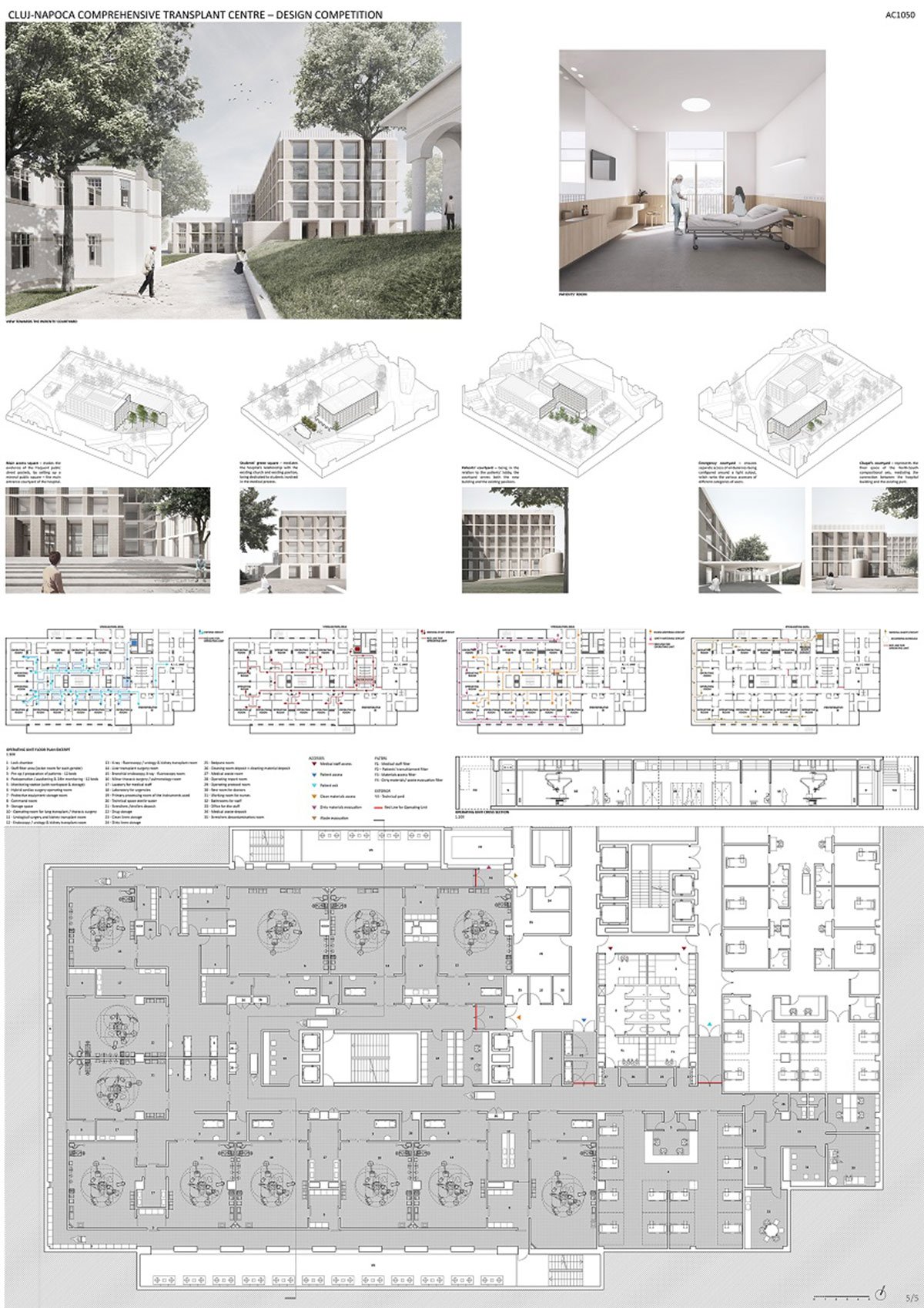 The competition seeks to select the best design solution for a Comprehensive Transplant Centre, located in the central area of Cluj-Napoca Municipality, within the University Hospital Complex. The ambition behind the competition is to design and execute the first transplant centre in the country that accommodates all the necessary facilities for four types of transplant: heart transplant, lung transplant, liver transplant and kidney transplant. Moreover, the future Comprehensive Transplant Centre is to provide an example of good practices both in terms of medical architecture and with regard to the insertion of a volume of contemporary architecture in a historical, heterogeneous site.
