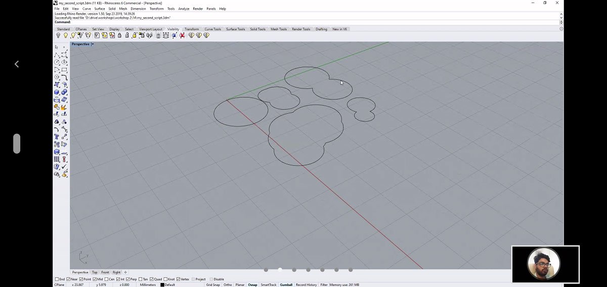 The session was to generate geometries in Rhino through direct scripting in jupyter notebook. The scripting was done to generate points and circles in the Rhino file. Further, converting the circles into nurb curves.