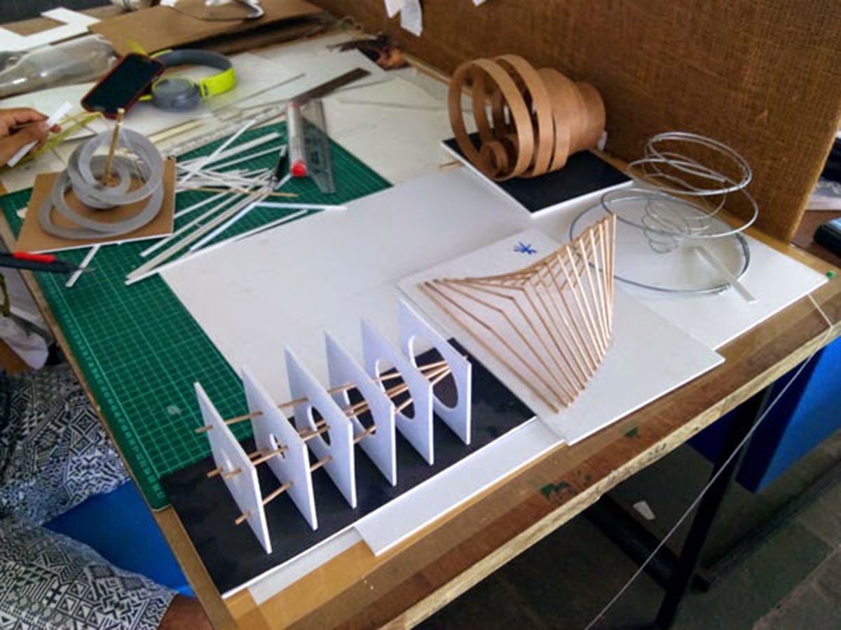 During the second stage students have explored various model-making materials for the selected first-stage models. The intention of the second stage was to allow the form to change as per the demand of new material. Although, many of the students ended up imitating the same form in the other materials, there were some good explorations of the materials as well. Following are some of the second stage models.