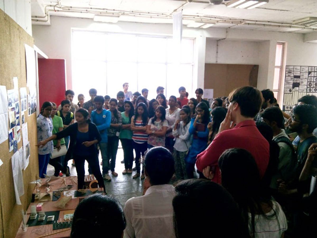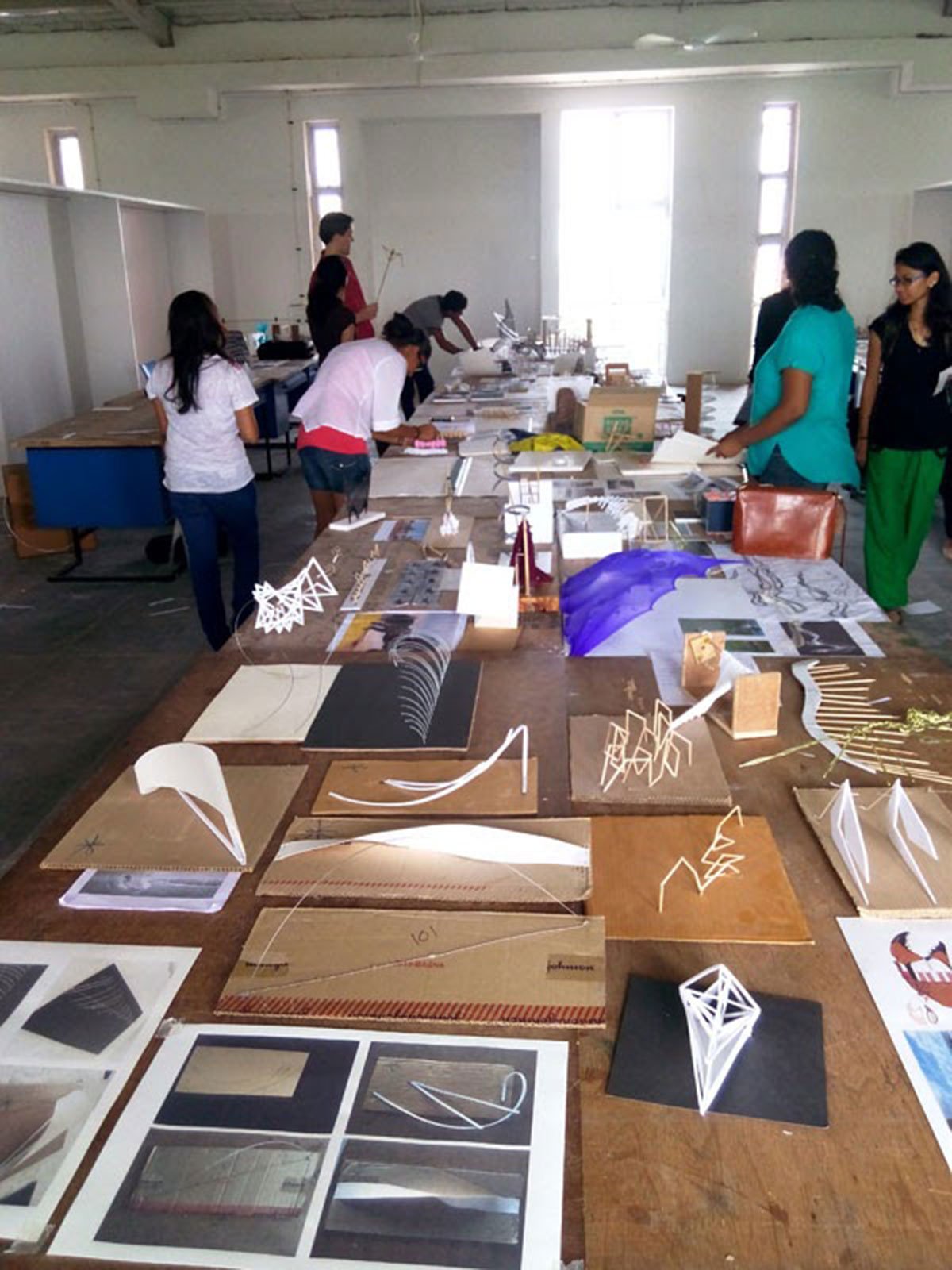 A joint review between the two studios was organized on last Saturday(30/08/14) at navrachana architecture college. CEPT students brought the photographs of their models, composed on A2 sheets. The idea of having a joint session was to learn by looking at others work, and interact with other students, who are exploring similar directions.