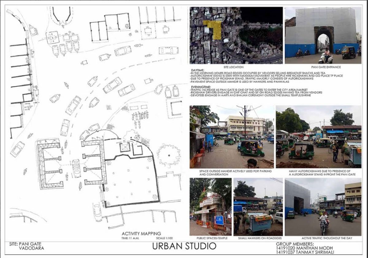 The idea of this exercise was to make the students experience open spaces of various scales, understand various activities happening in these spaces at different times, understand the kind of functions that develop around these open spaces, and also understand the logic behind their placement and distribution in the urban fabric.