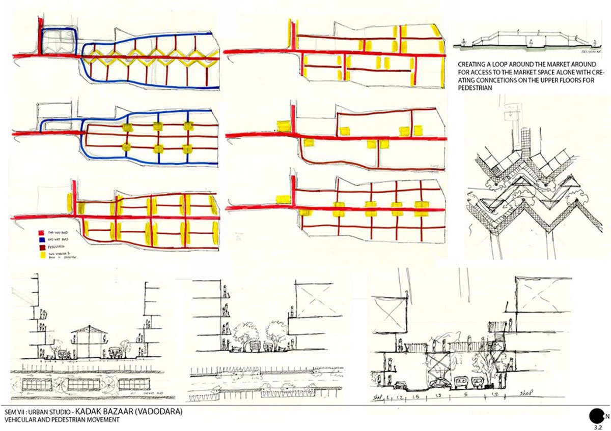 Vehicular and Pedestrian network: Strategies for the movement of people, vehicles, and parking based on site-analysis and case-studies.