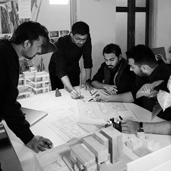 Inpractice’ is appropriating traditional ways of living in the present time by means of materials, light and spatial explorations. Where ‘in’ is symbolic of the present time and ‘practice’ is the method to do architecture. Founded by Caitanya, Jay, Parth and Vivek, ‘inpractice’ is a design studio that focuses on a non-linear design approach with inventive solutions. For each project, the inquiry starts with what lies at the core of the project’s purpose; shapes its relevance in time with reference to its architectural, economic and social value. The process involves rigorous research for innovative material applications. ‘Light’ is the primal element at the core of the practice. We often say –