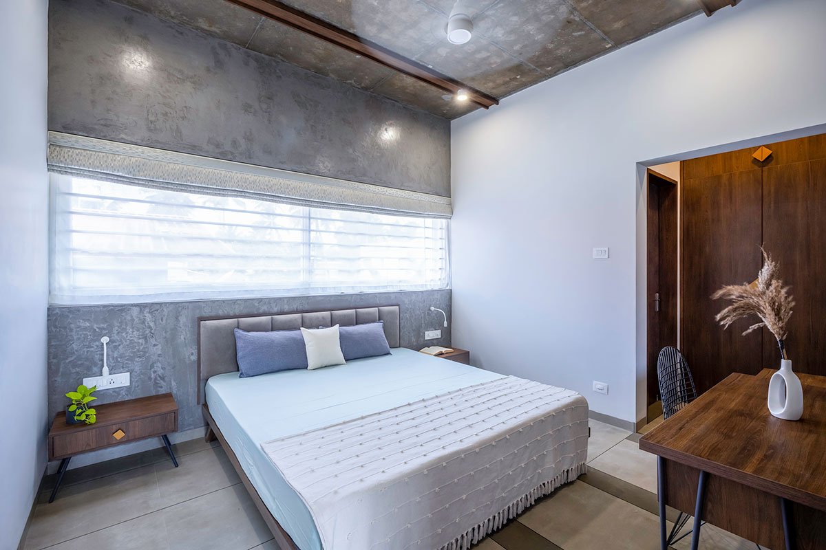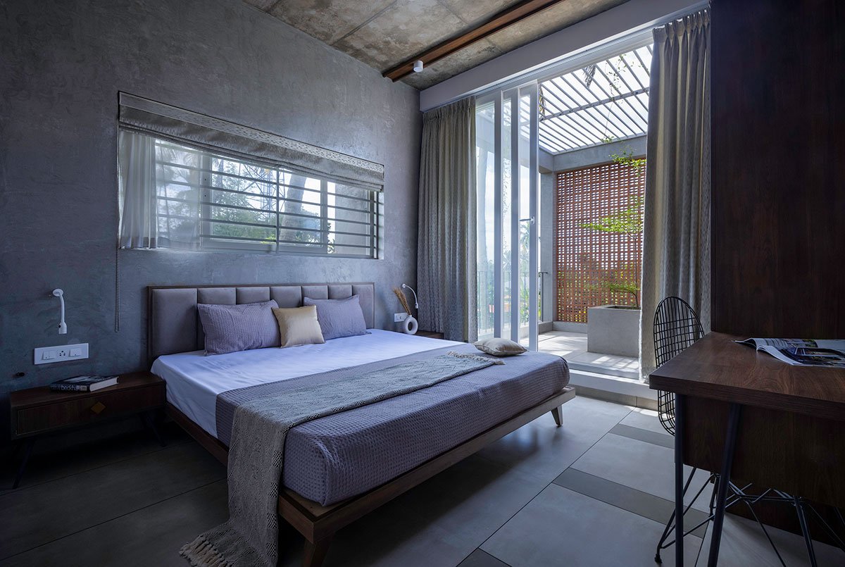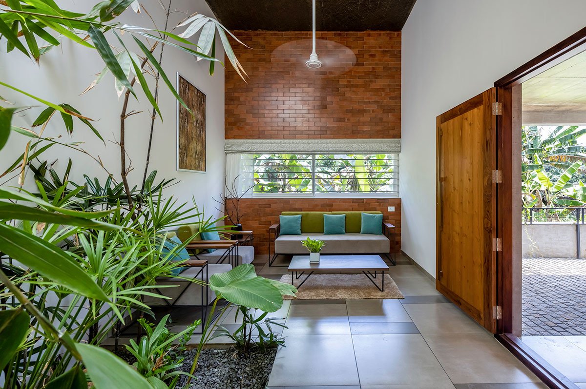 The green court, garden, brick jallis and stilts- are all in harmony to achieve the purpose and to offer the most needed getaway spaces- visual as well as physical. The clutter-free interior design, climate-responsive facades, and openings allow a lot of natural creating a contemplative calm.