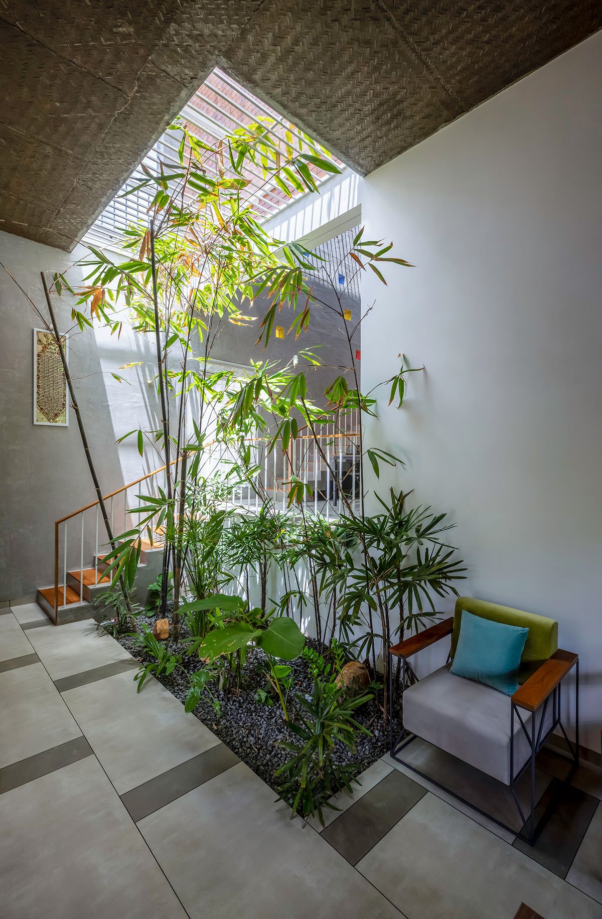 Despite the narrowness of the site, the interior spaces did not compromise on the movement of light and air circulation. The design also took advantage of the longitudinal slope of the site via a stepped-down floor plate following the natural contours of the land, creating levels inside the house and thus the name 0 to 150 lvl.