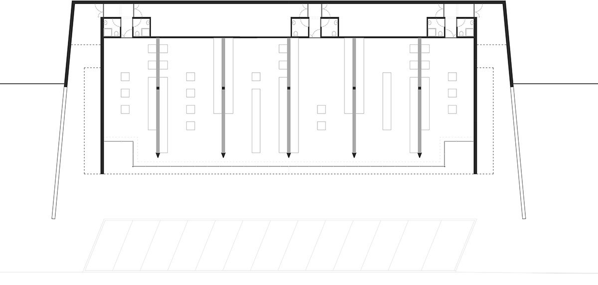 In the whole building, the structural material – precast concrete – is directly exposed, without any additional finishing, thus reducing the resources, the manpower and the arts involved in the construction process and, consequently, reducing its environmental impact. This approach has a direct effect in the acceleration of the building process: all its components are fully prepared in factory and quickly assembled in situ, performing at once as structure, insulation and cladding elements.