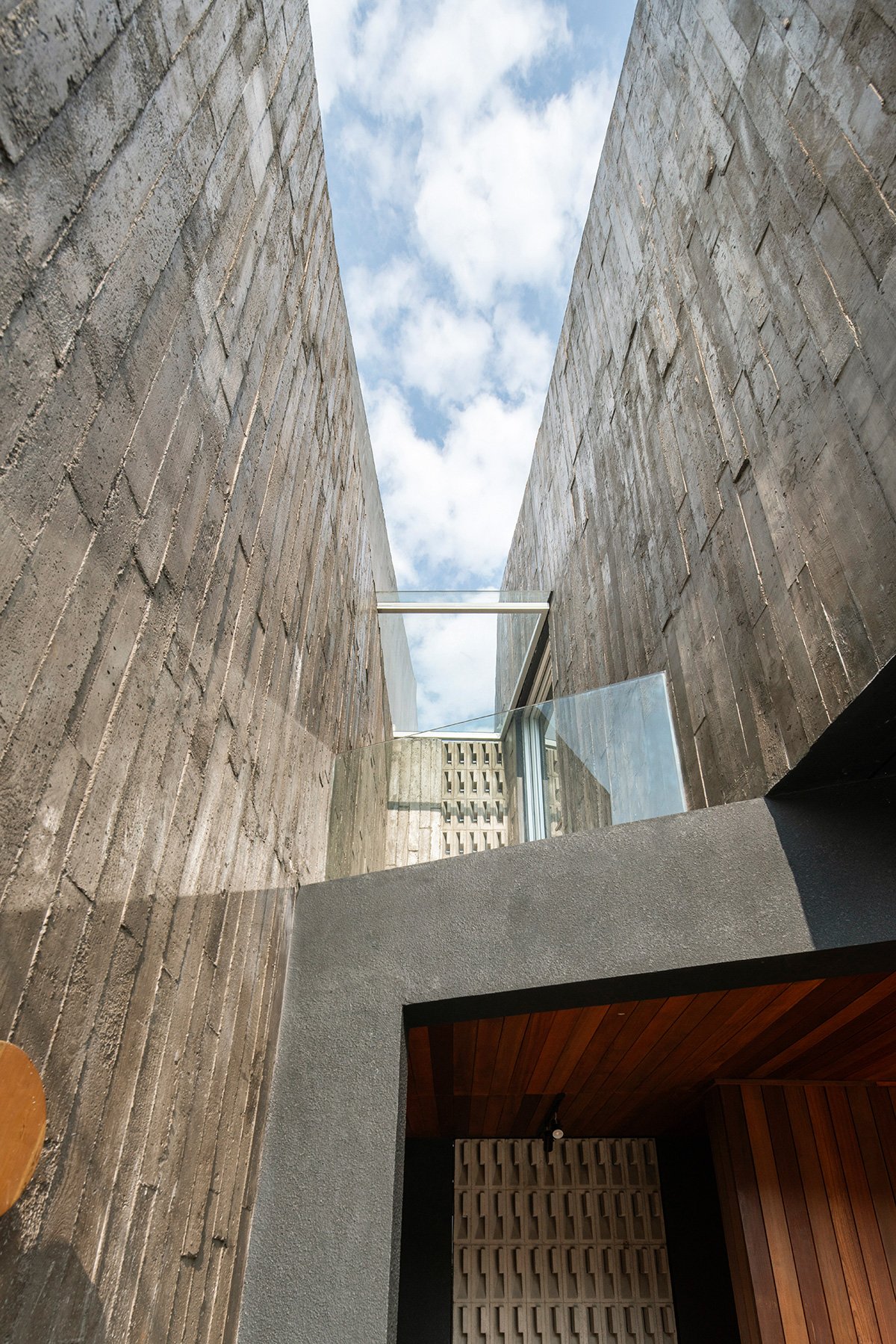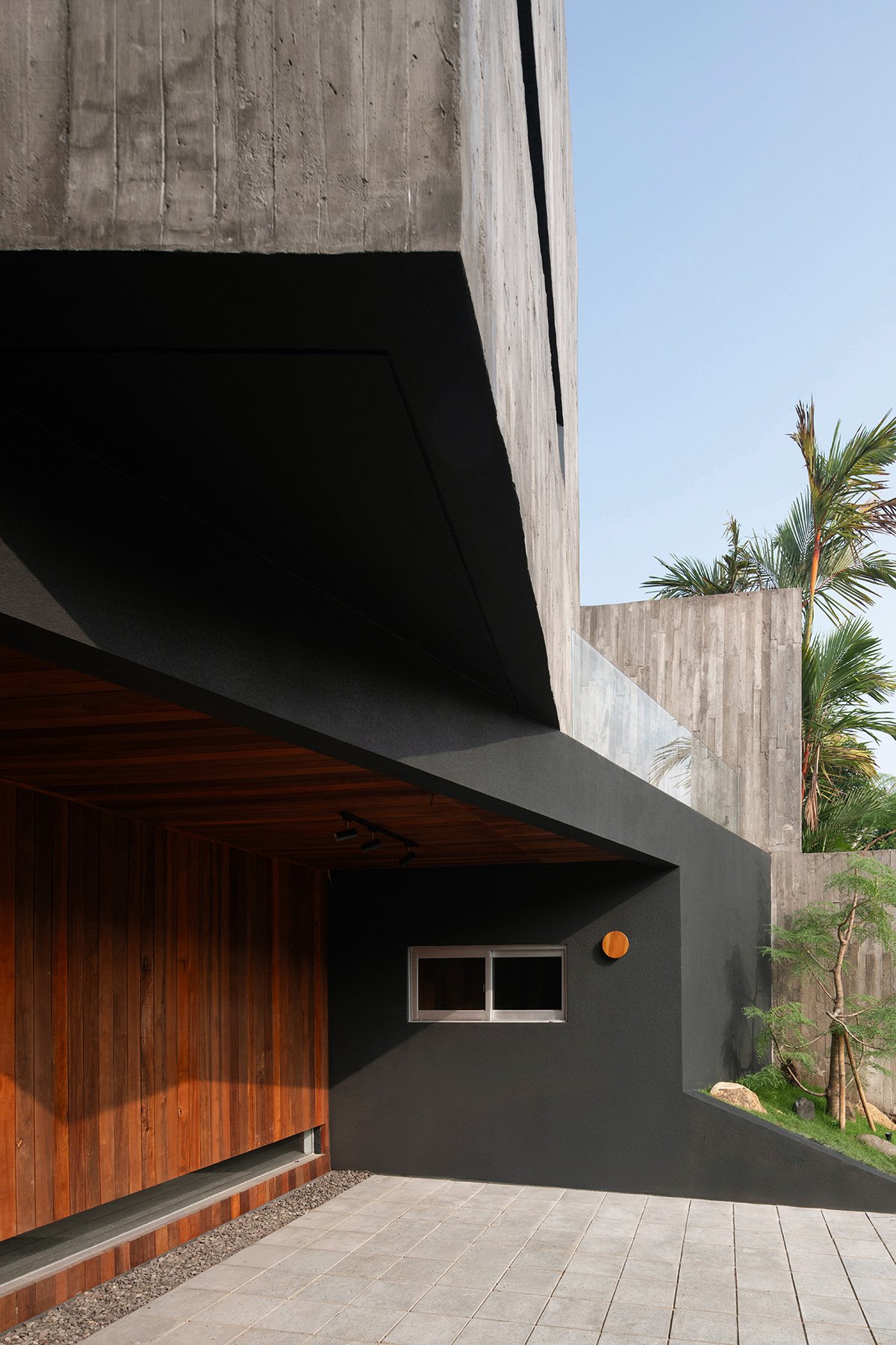 [Text as submitted by architect] This house is named the 10º house because the axis of the facade is tilted 10 degrees to the east. This project is a renovation of an old house. It is a striking example of contemporary tropical architecture, merging robust material expression with a refined spatial composition. The house exhibits a monolithic exterior characterized by board-formed concrete façades that evoke a raw yet deliberate aesthetic. The texture of the concrete panels—retaining the imprint of the wooden formwork—imbues the structure with a tactile quality, grounding it in material honesty and craftsmanship. The interplay between solid and void is orchestrated through precisely placed apertures and deep recesses, allowing controlled daylight to filter through while maintaining privacy from the street.