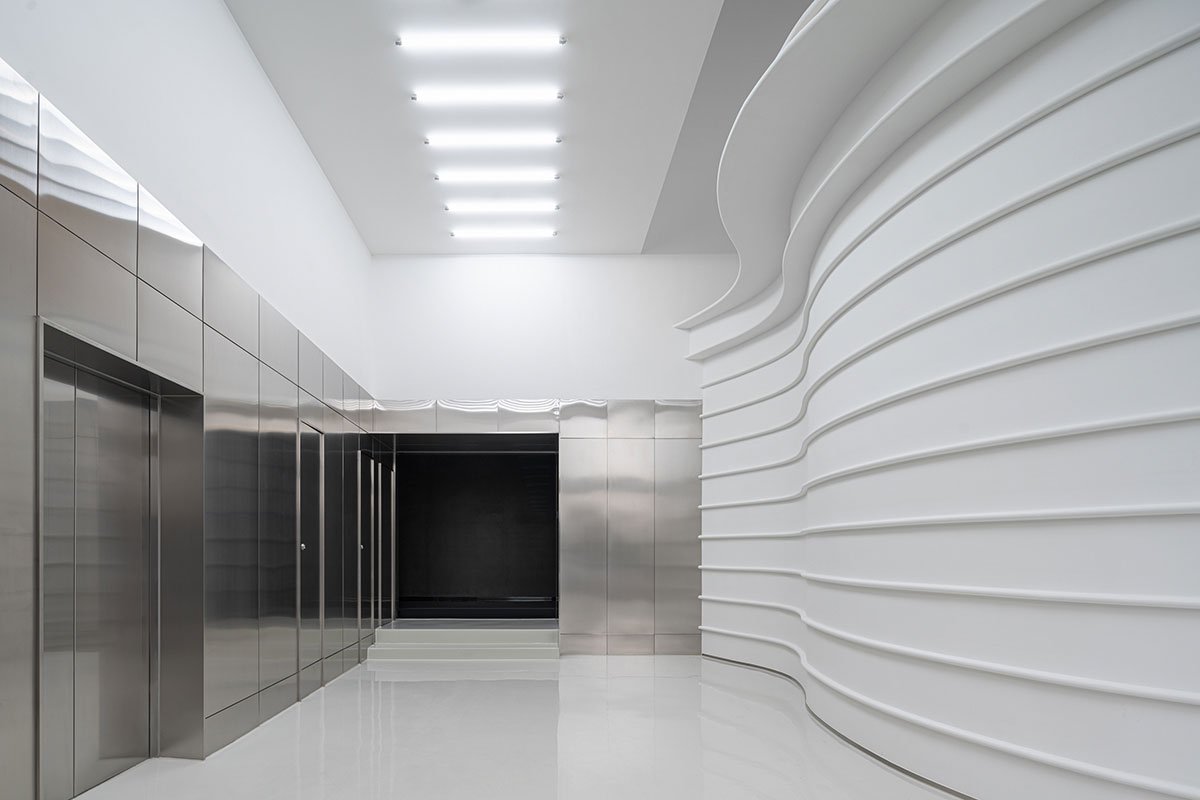 [Text as submitted by architect] 2022: Golong Wormhole is an experimental space for events and exhibitions at the Golong Holdings headquarter building in Hangzhou, China. The space allows for flexible programming, while maintaining a consistent visual language that represents the inquisitive and transformative brand culture of Golong, a beauty and wellness conglomerate.