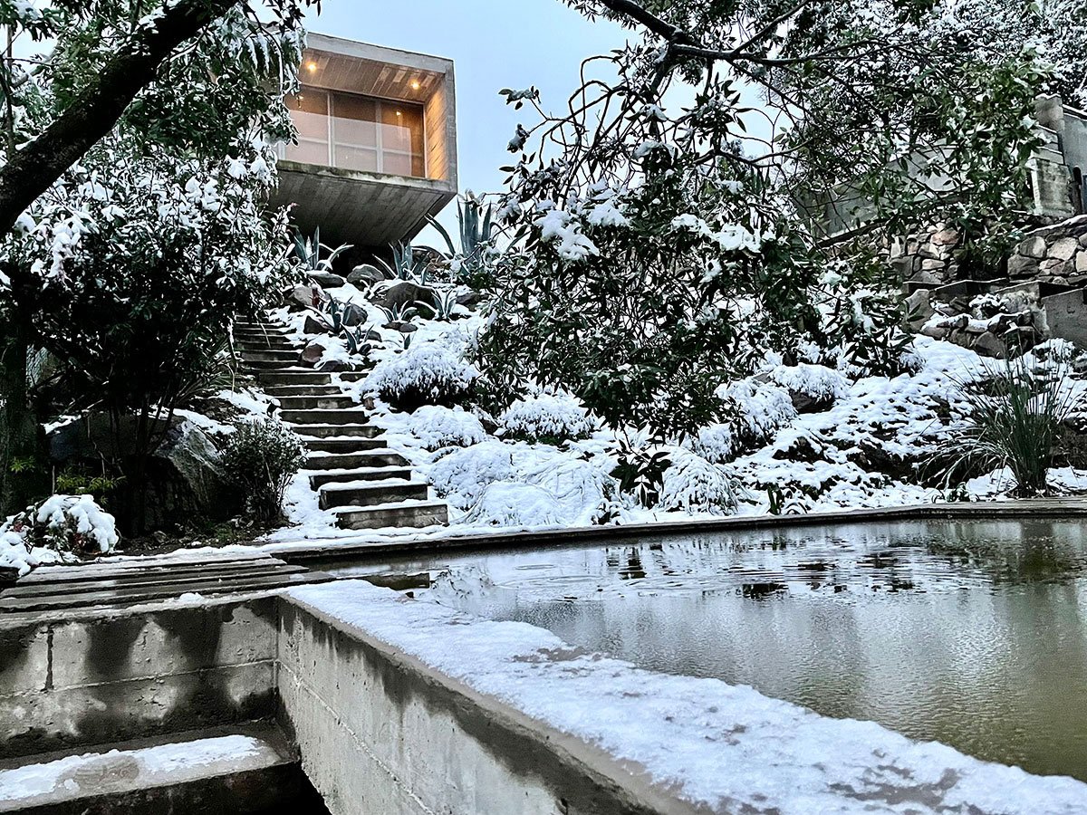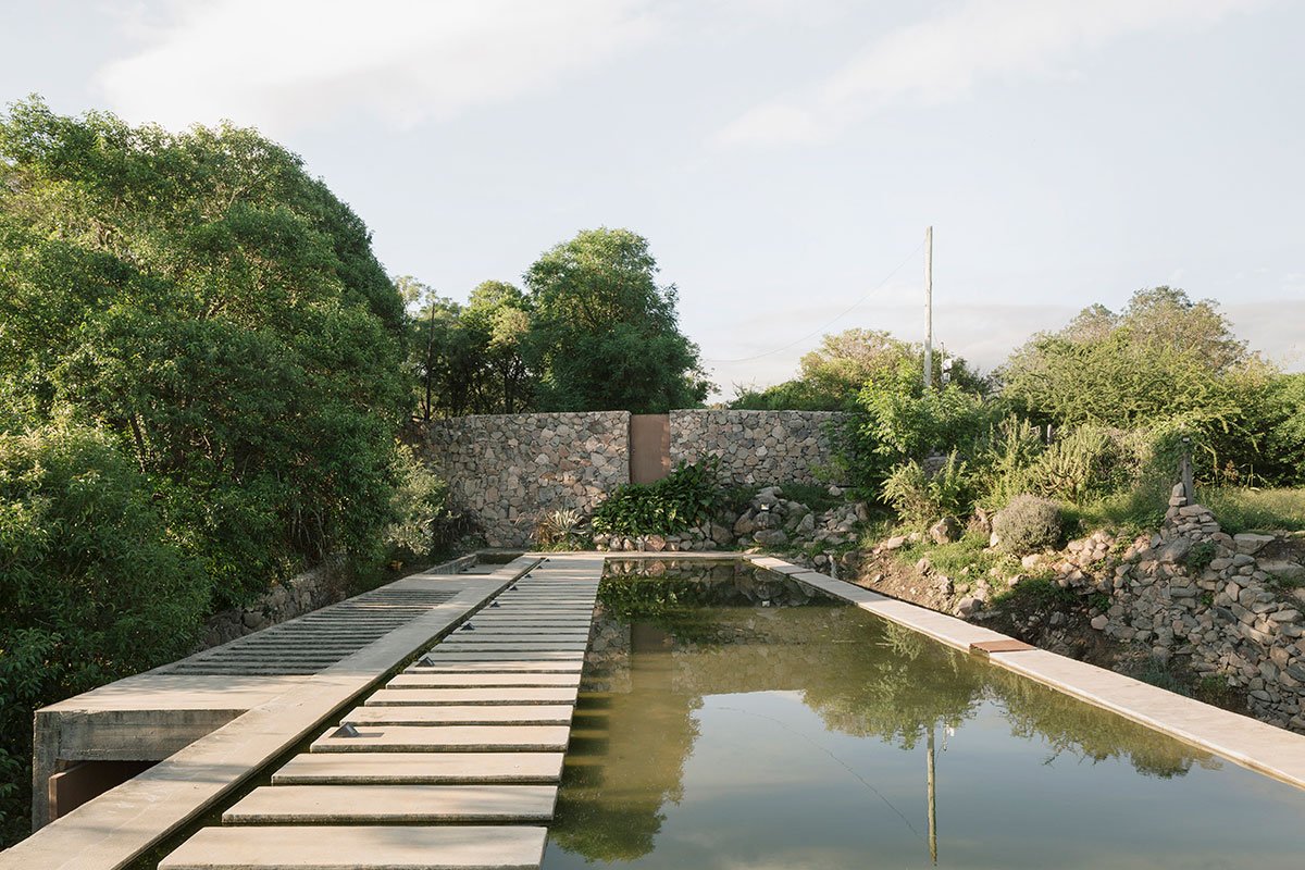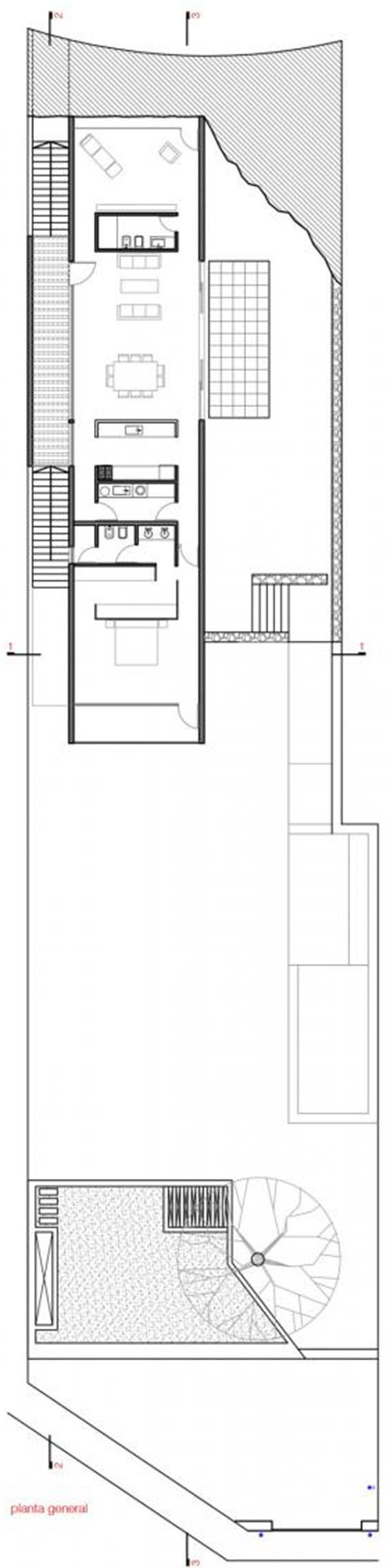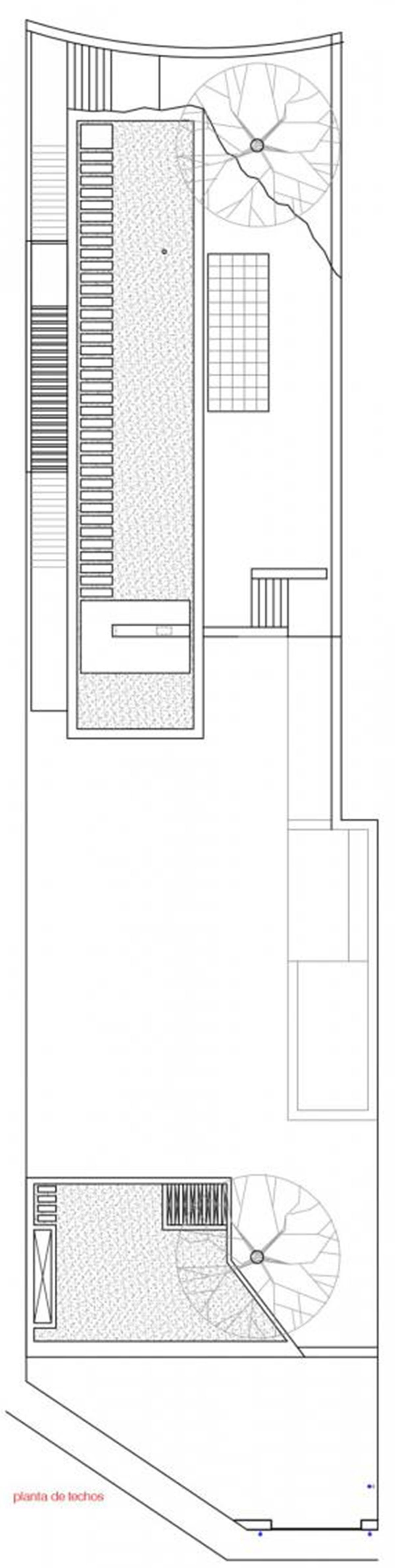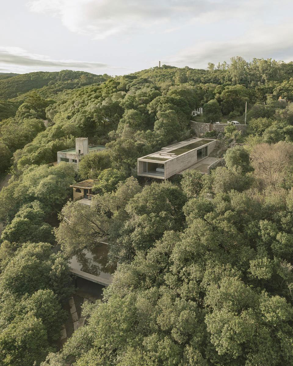 The house has two entrances: the daily entrance is at the lower part of the lot, and the main entrance is at the upper part. The street level is above the roof, which acts as a large square/viewpoint of reception, from where an impressive view of the mountains and the city of Cordoba can be appreciated. This reinforced concrete roof is flooded, resolving the materiality of the plaza, providing thermal and energy balance in the interior at low cost, and contributing to the natural environment.