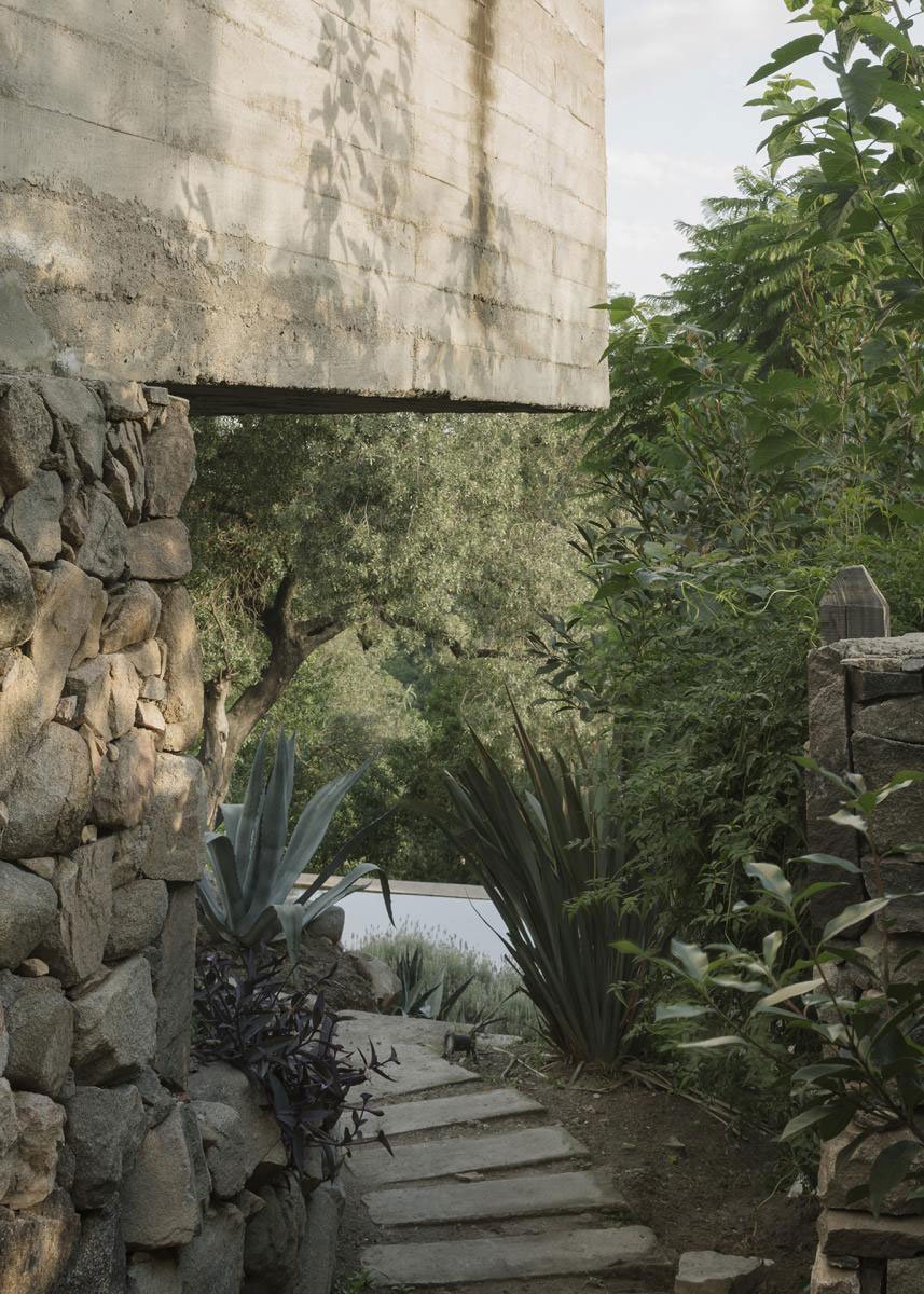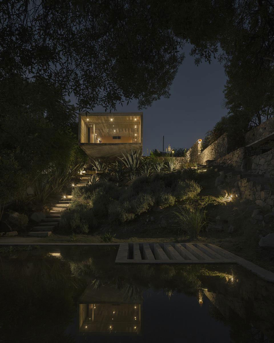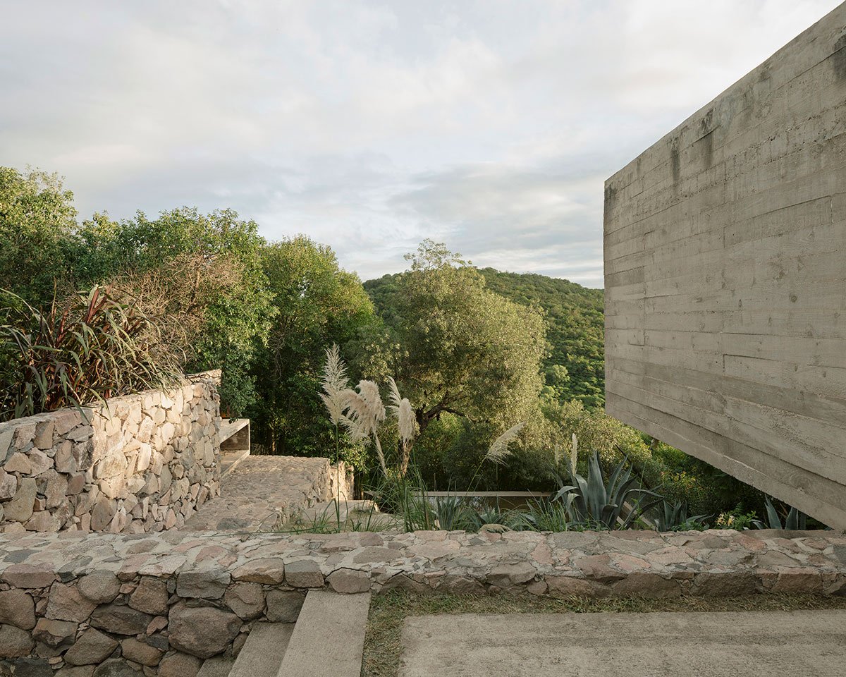The house’s materiality follows the concept of using noble raw materials, naked, expressing nature, and generating a respectful relationship with the environment. In addition to concrete, local stone, wood, and glass were used.