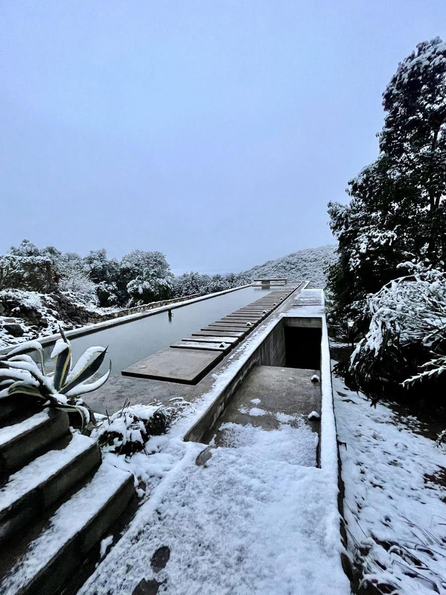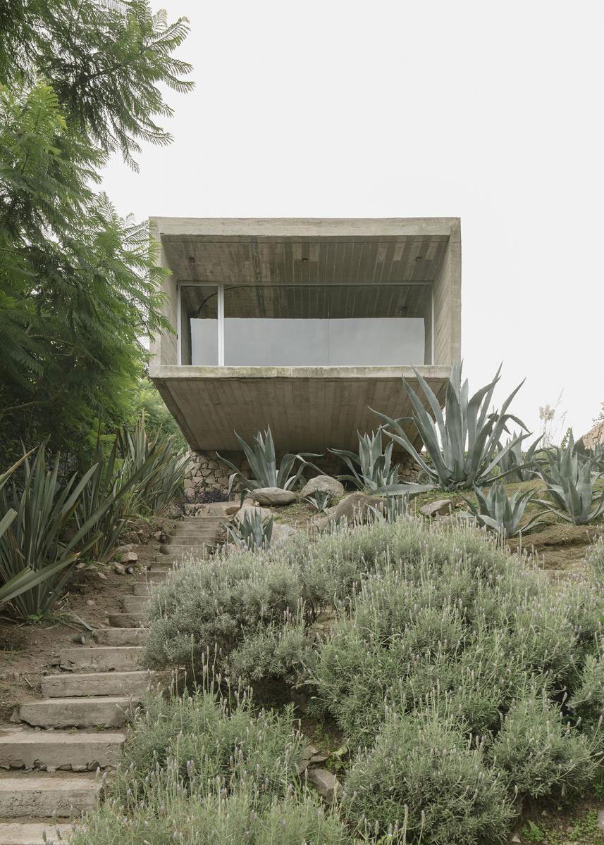 In response to a slope of 15 meters between the ends of the lot and a width of 13 meters. It was decided to propose a vierendeel beam, with one end embedded in the mountain and the other cantilevered, resolving from this concept the structure, materiality, and the house envelope. It generates a reinforced concrete tube inside, which houses the architectural program of a single-family home for a couple.