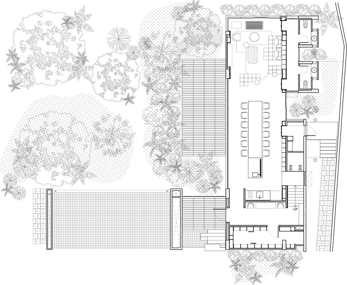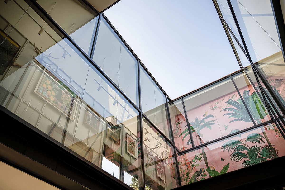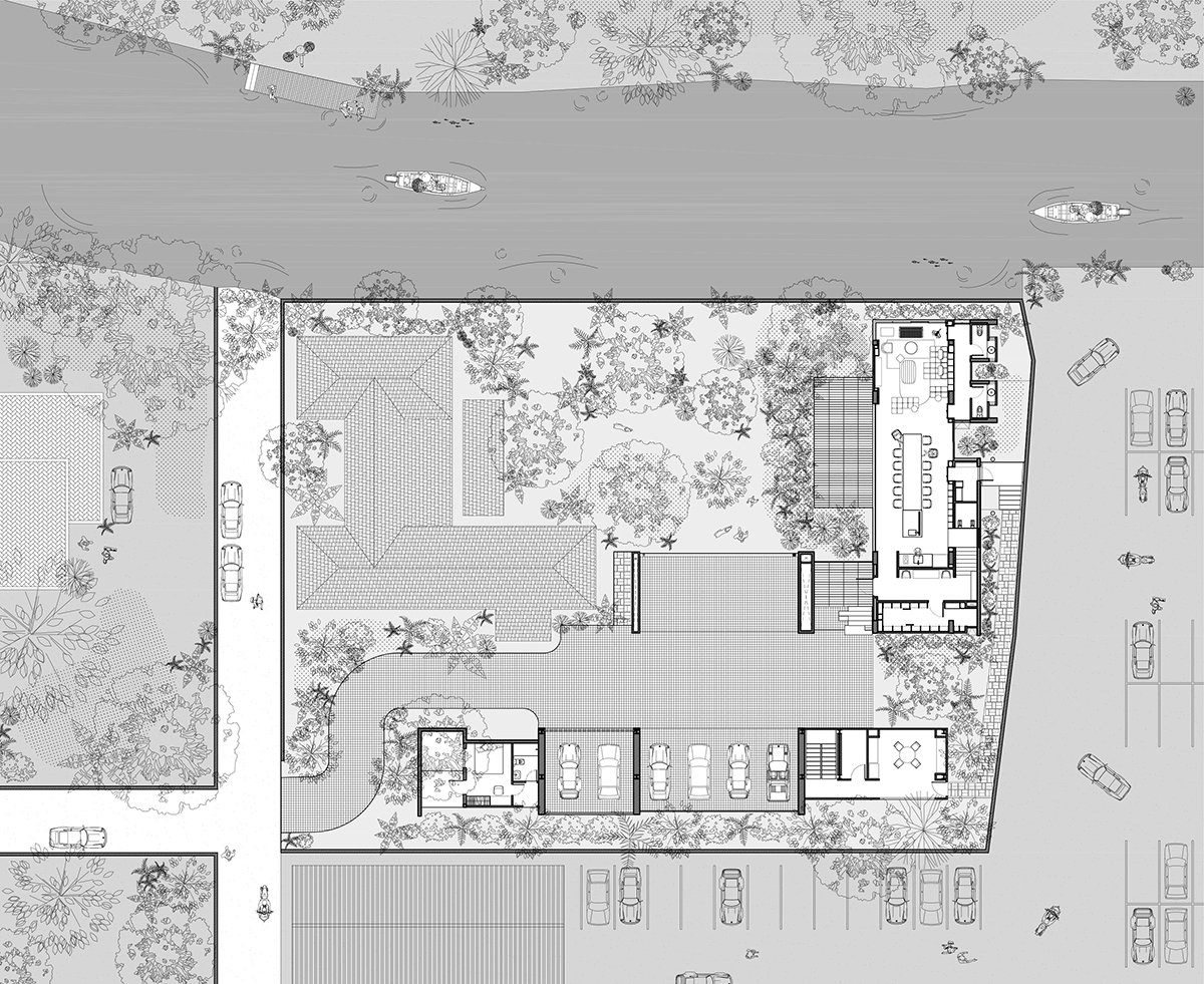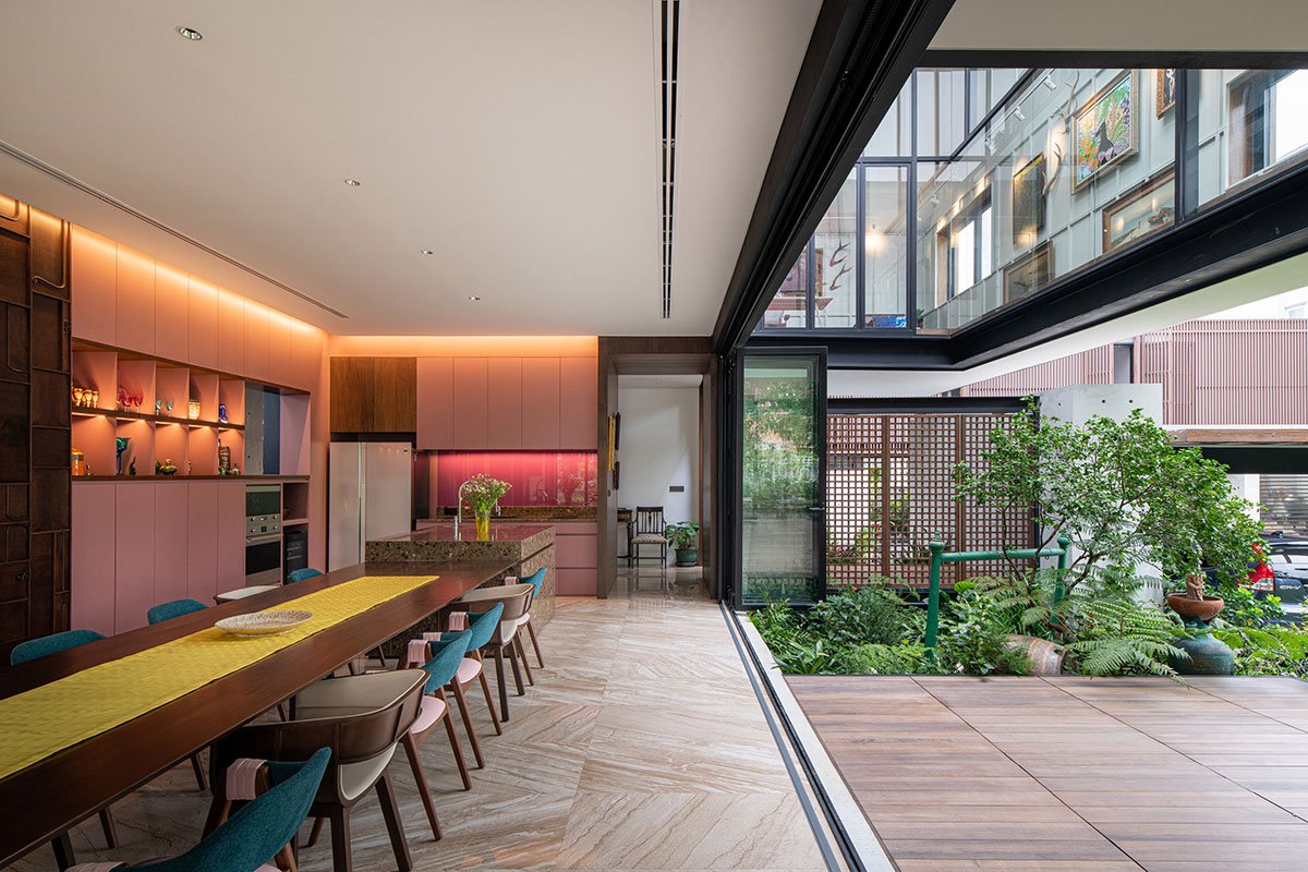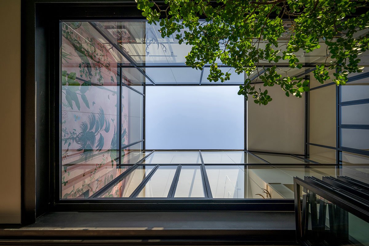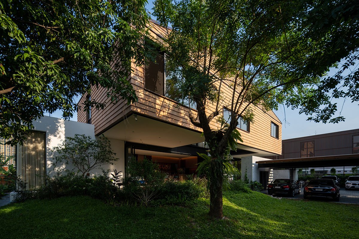 The owner has collected many antique artworks, vases, chests, and sculptures related to the family’s history. These artworks were displayed in every room in the old house. MAINCOURSE aimed to redesign how these treasures were presented by making the pieces to the central core of the house as ‘the floating gallery’ using 6 columns with the truss structure floating over the terrace and the greenery. The collections could be appreciated from every critical area of the house, creating a unique experience for the owners and welcoming guests at the entrance.