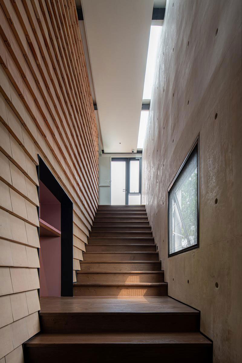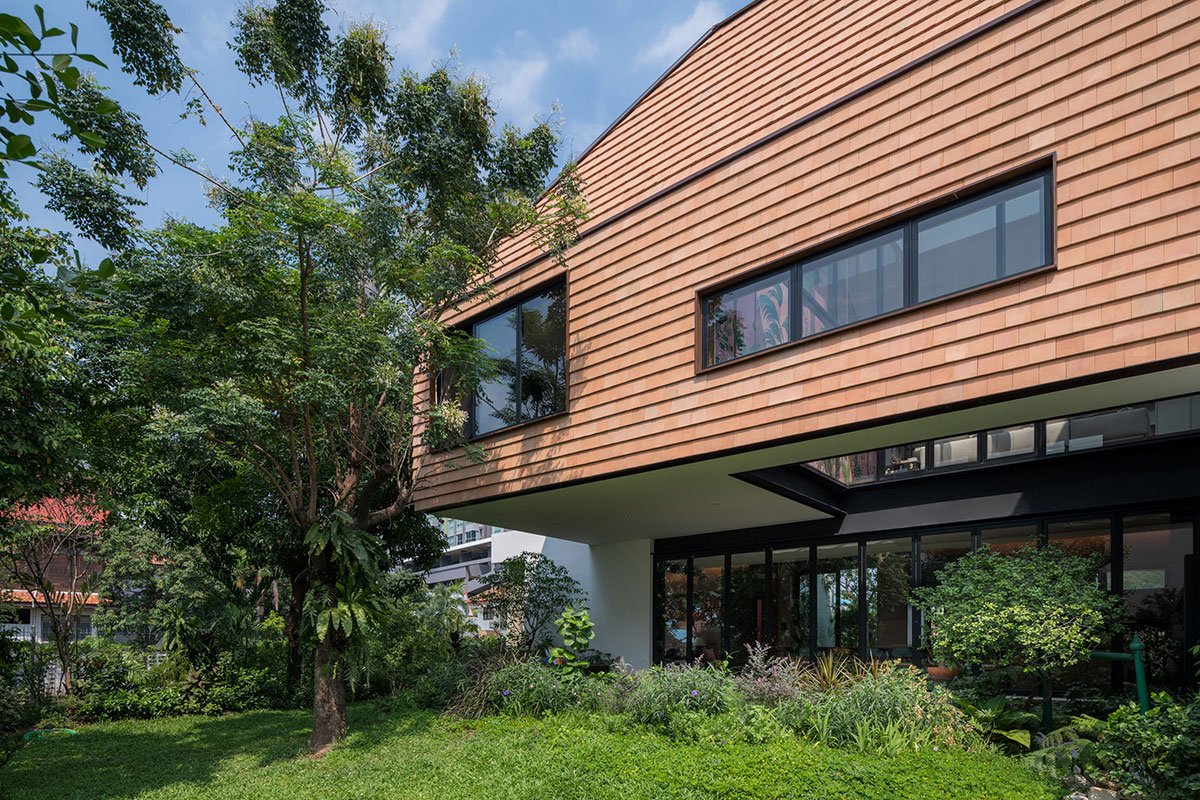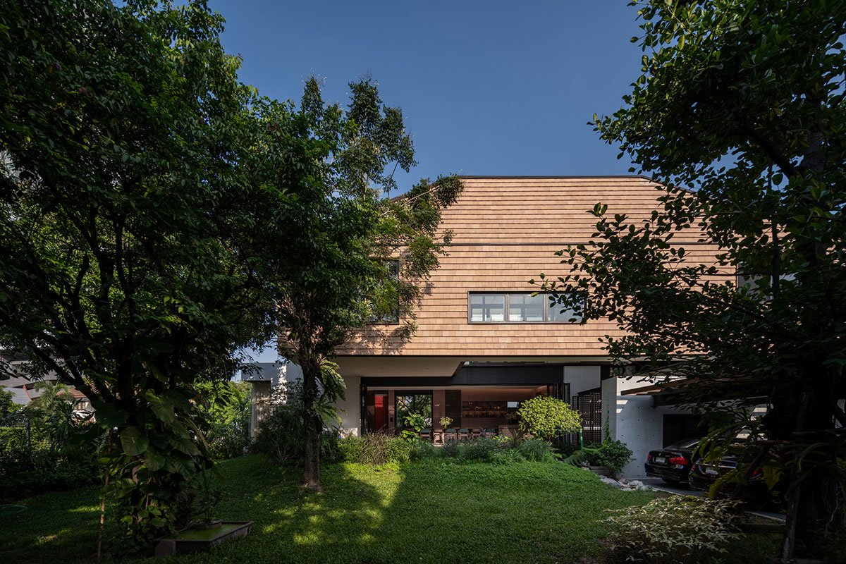 Excerpt: 427 House is a residence designed by the architectural firm MAINCOURSE ARCHITECT. 427 House was built on the existing footprint of the old house, which has a memorable flashback of the family. MAINCOURSE demanded respect and remembered the valuable memory by using clay cladding for the facade of the floating mass, which recalled the sense of place where they used to live. Throughout the design, the material palette of this house was reflected in the client’s unique, fashionable, and colorful fashion style. The juxtaposition of the antique and new furniture displays the family’s story and the owner’s personality coexistent.