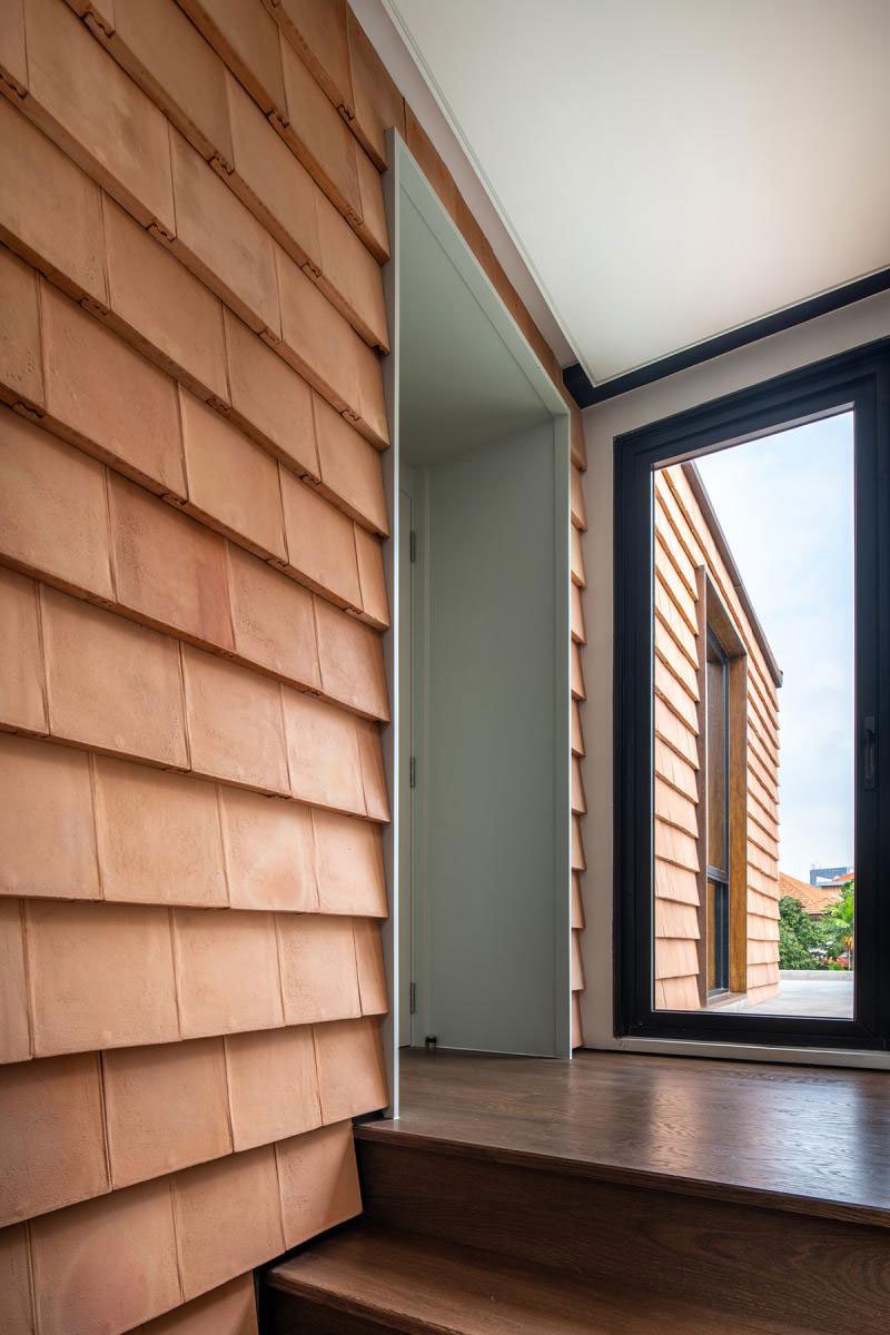 The specially mixed clay 1220 degree Celsius fired has collaborated with Mo Jirachaisakul, an expert in clay and glass. It was designed to be used throughout the interior and exterior, from the roof to the bathroom. Therefore, it must be durable and tactile-friendly at the same time.