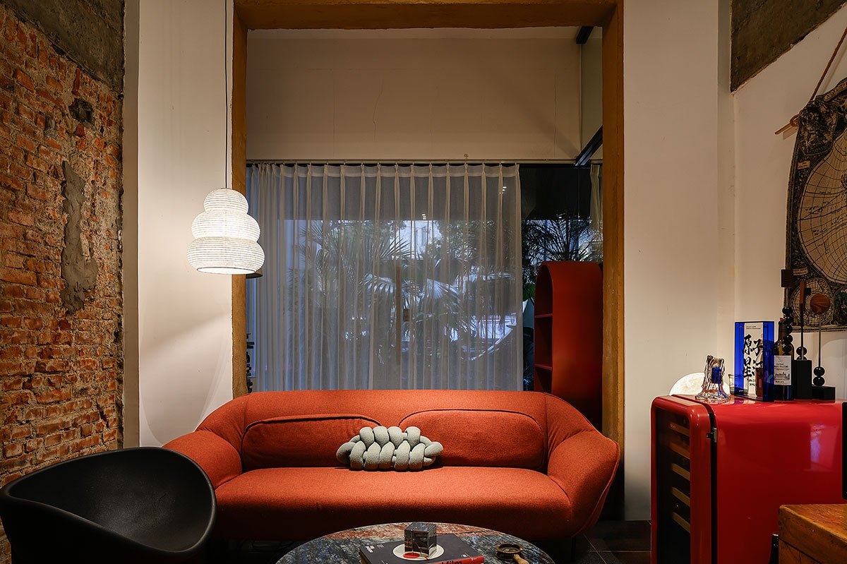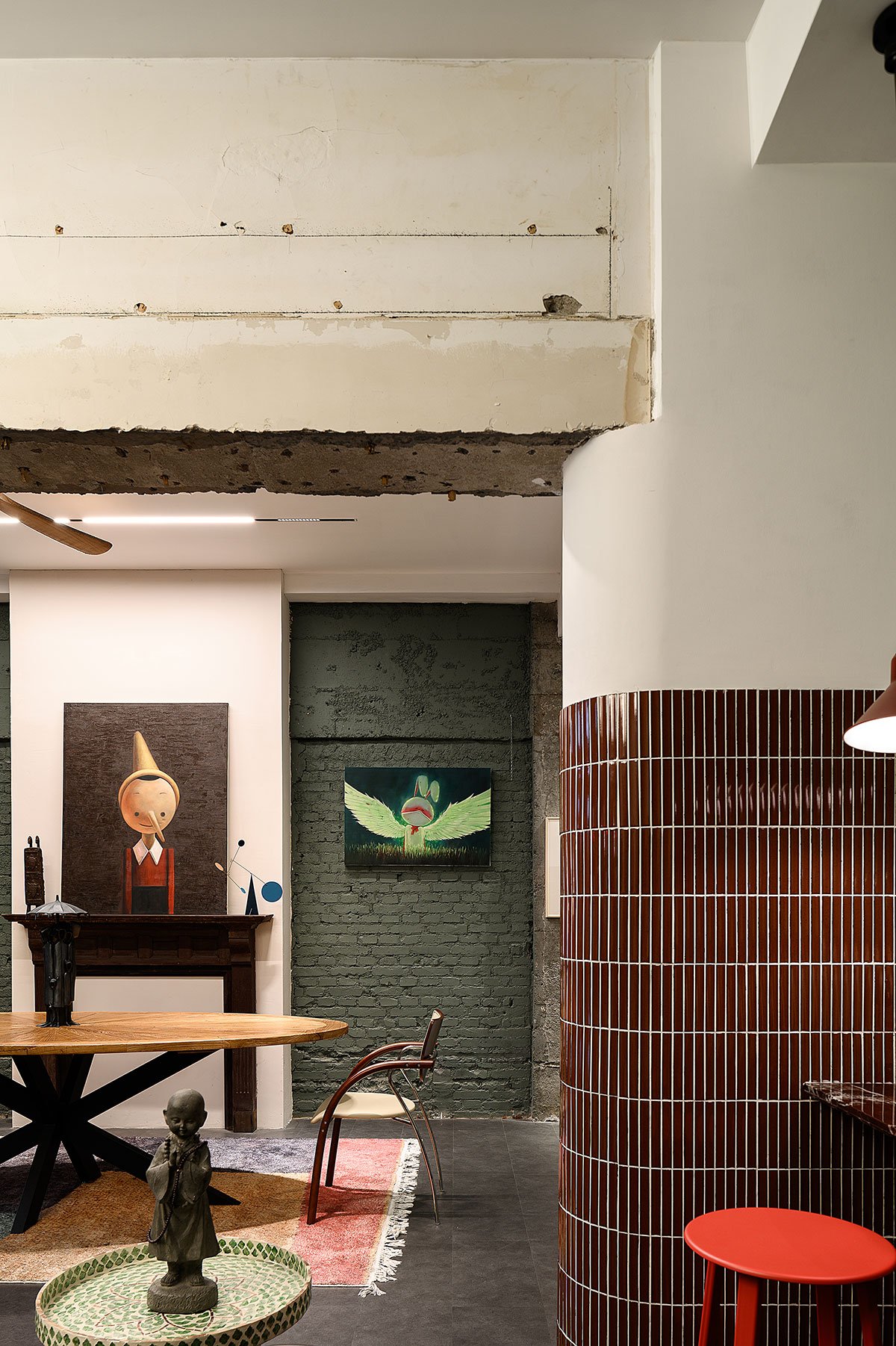 A large amount of the rough concrete structure and rich wall textures of the building are preserved to create the facade effect in the existing space, while the brick facade is painted with a variety of colors, complemented by wood, ceramic, metal, etc. The intense colors and direct collision of different materials generate huge tension.