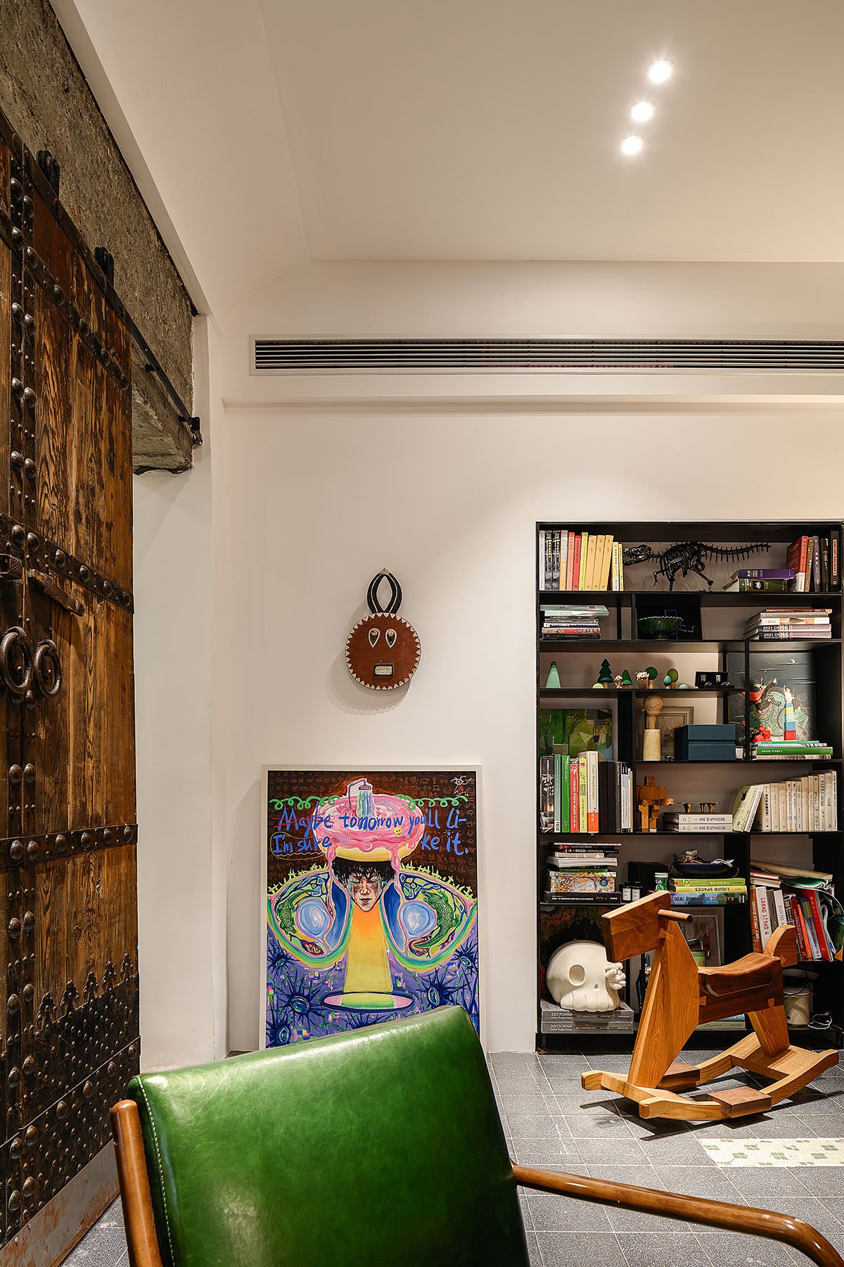 In contrast to the simple and cost-effective hard decor space, the soft decoration combination is rich and dazzling. Every item in the space may be a meaningful item obtained from different places and different periods, not necessarily priceless, but each one is significant, making the bold and vibrant space not lacking in curiosity and interest, wrapped in the warm and inclusive heart of the owner under the basic structure of multifarious and interesting.