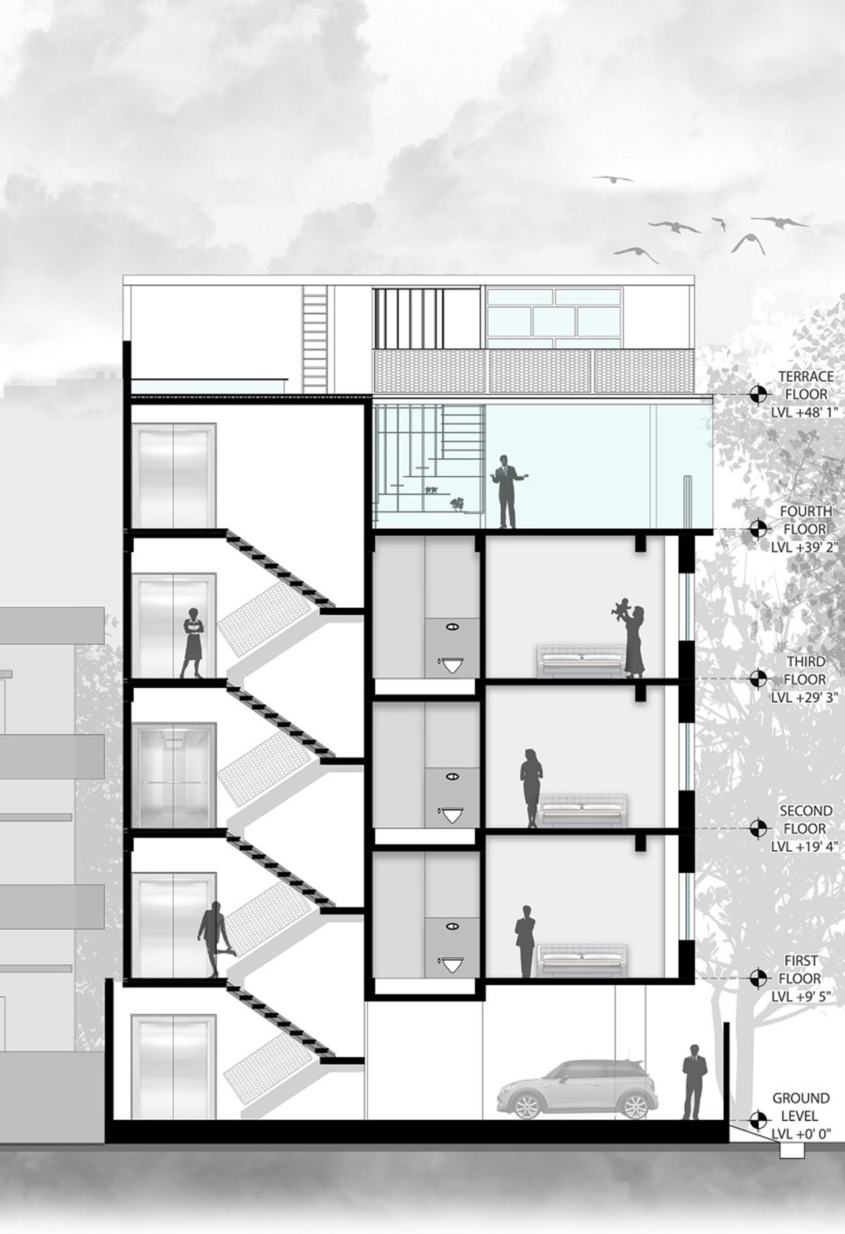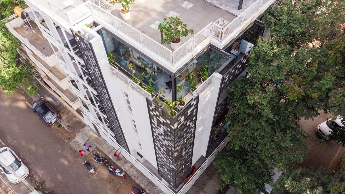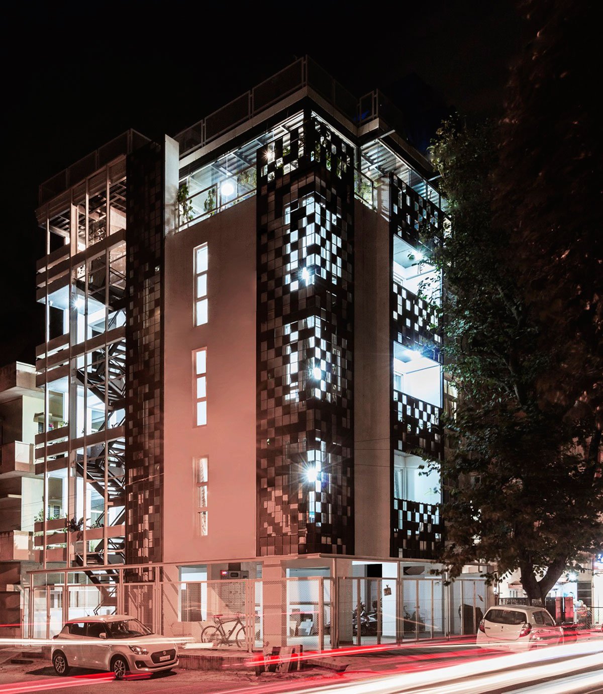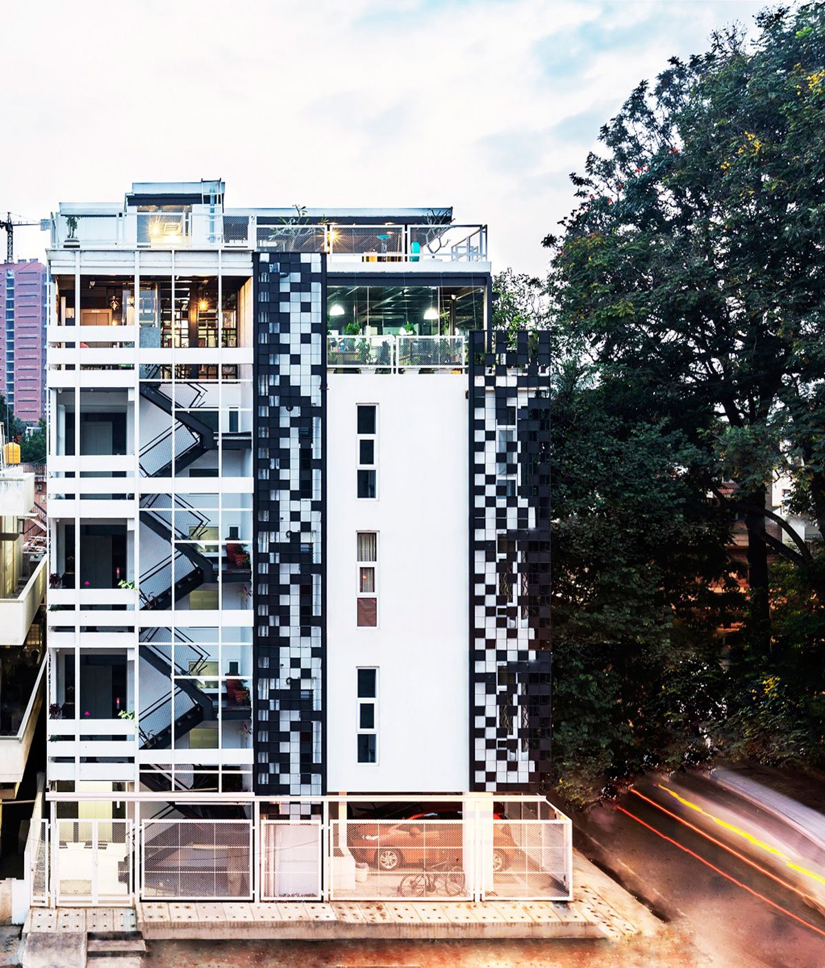 [Text submitted by the Architect] The idea for this mixed-use project located in Bangalore, was context based and inspired by the architects need for an office space while retaining the residential flavor of the layout. This ground-up 4-story mixed-use building contains the architect’s office and apartments.