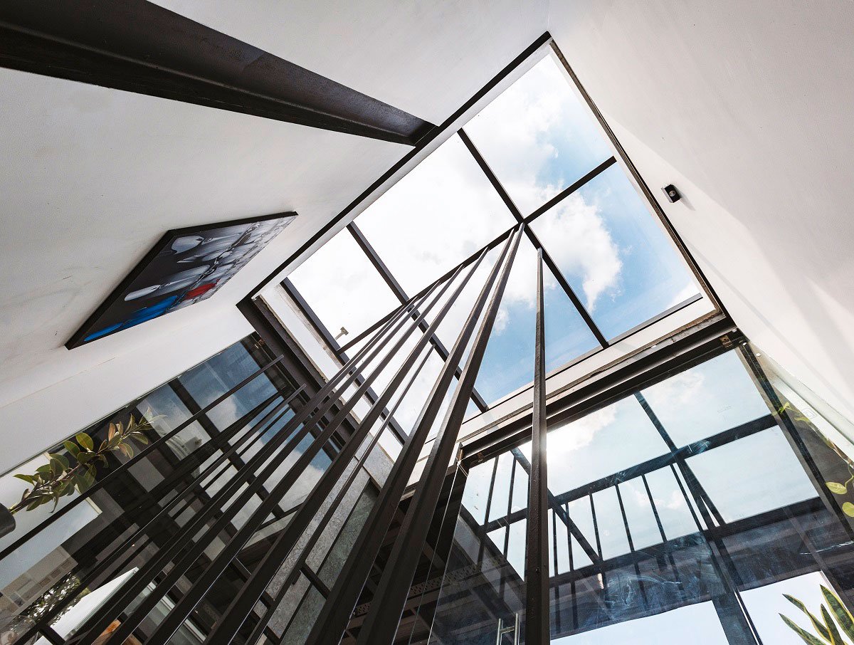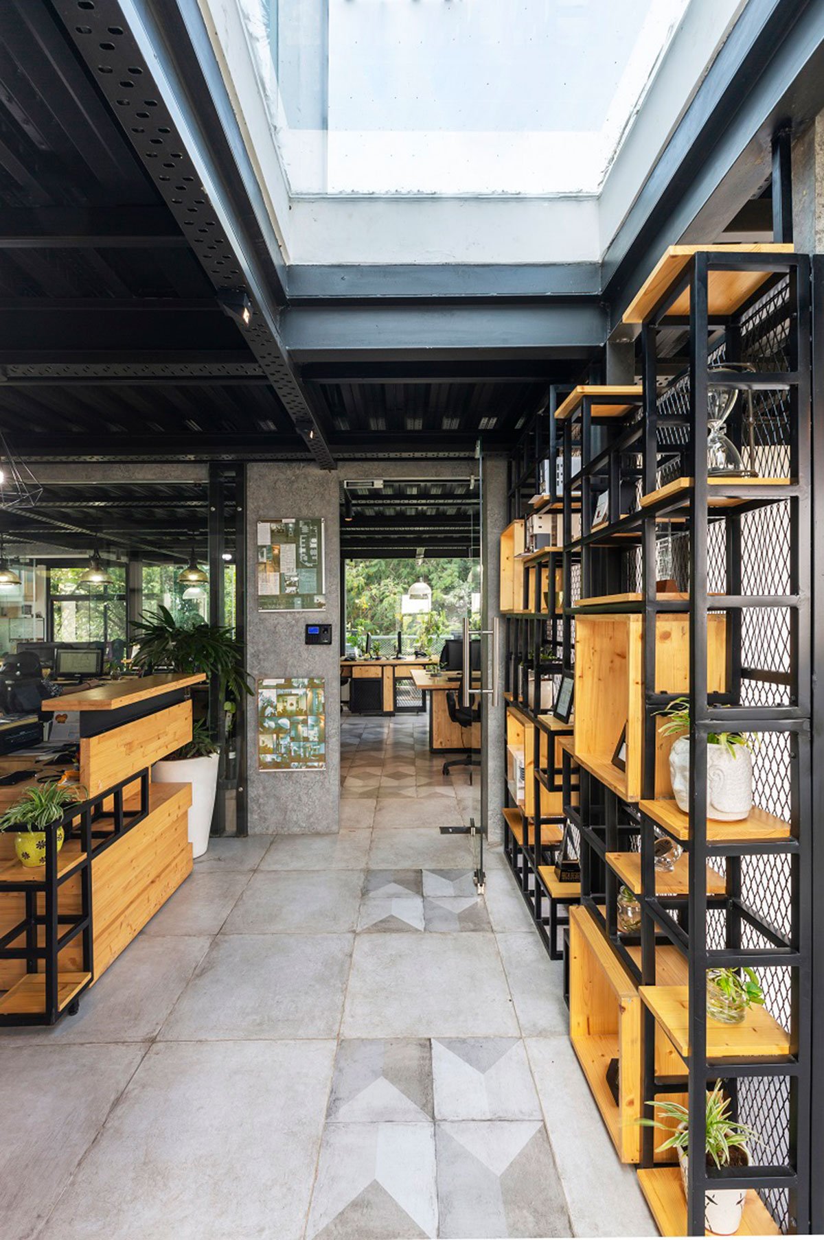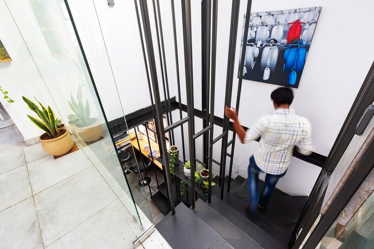 One of the highlights is the suspended stairway between the office space and terrace area. Besides being an architectural feature, it also doubles up as a display space, thus making the space neat and airy.