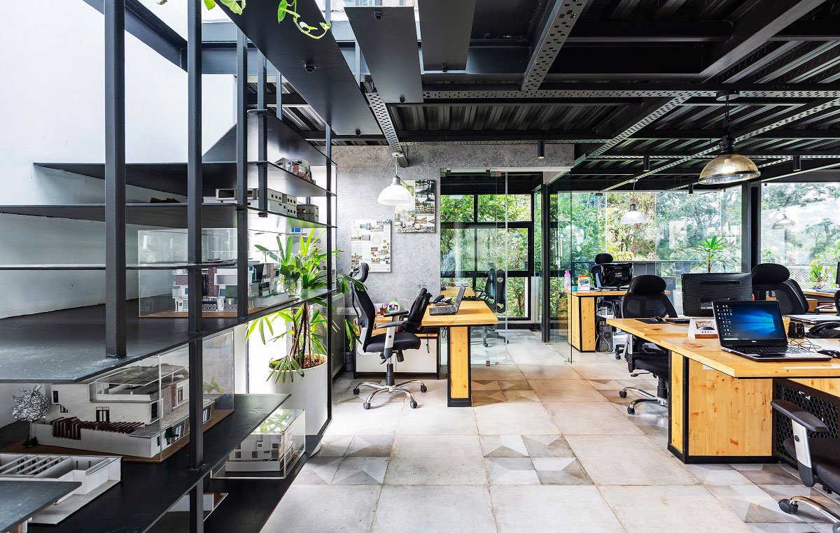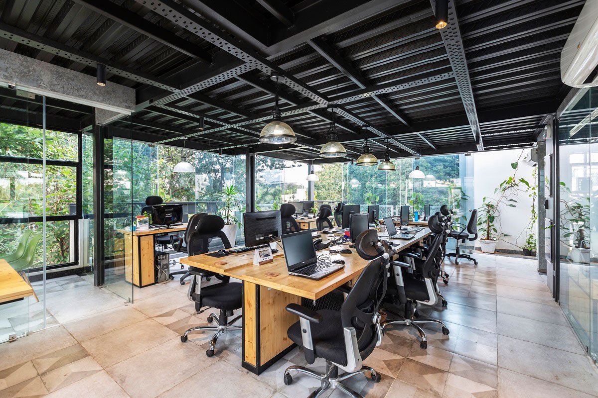 The usage of glass walls and deck roofing results in a modern looking office suited for the millennial