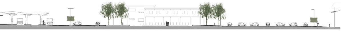 This proposal identifies a few functional specifications and articulates the space into three main areas, differentiating the central pedestrianized area from the adjacent areas that can be accessed by cars. The central part is the core of the project, it directly accesses the opposite railway station from a car-free area. This pedestrian square becomes the gateway to town, as well as the new urban centre, a place for social gatherings and suitable for events.