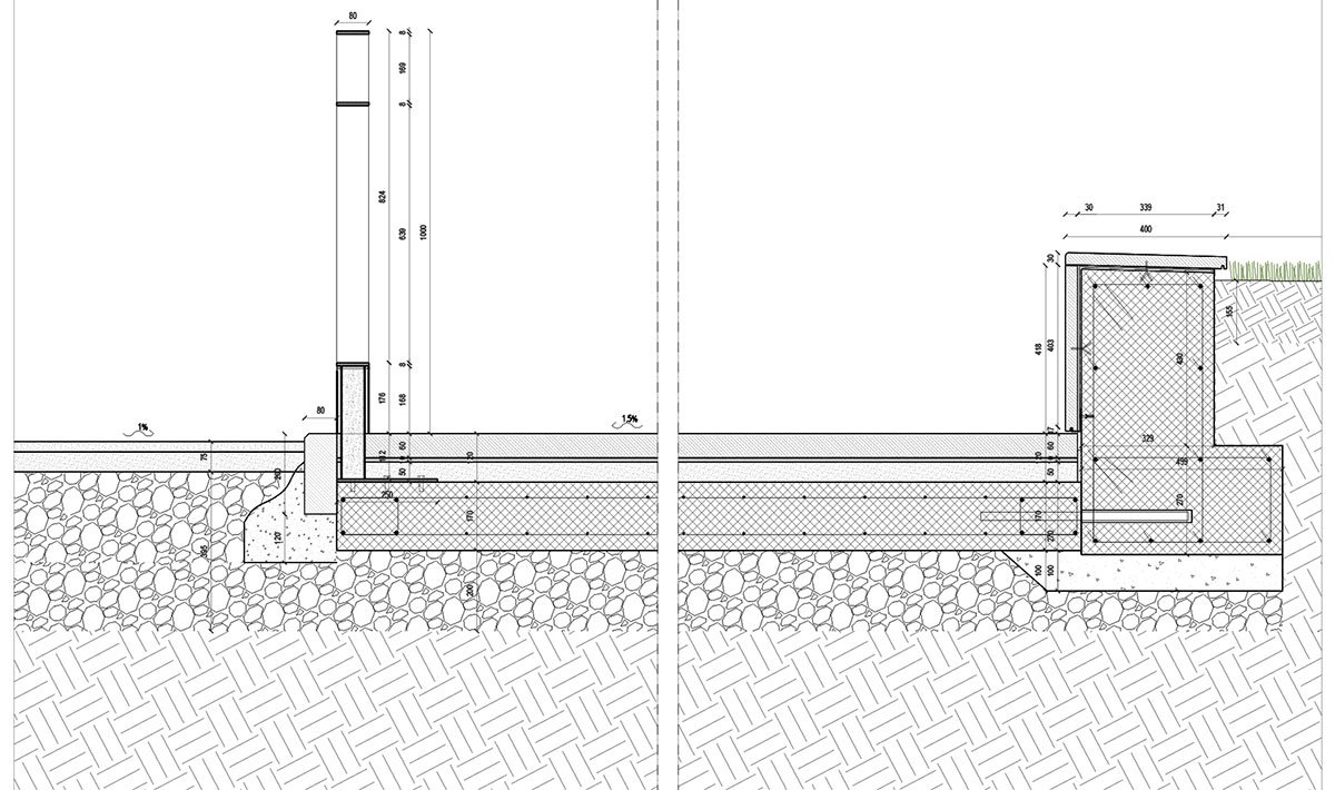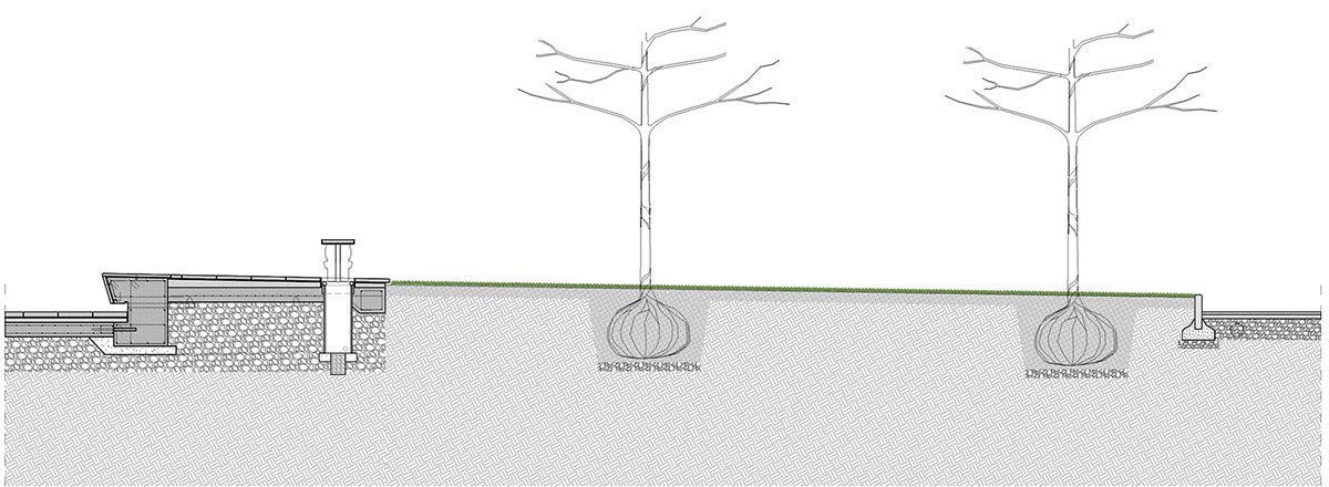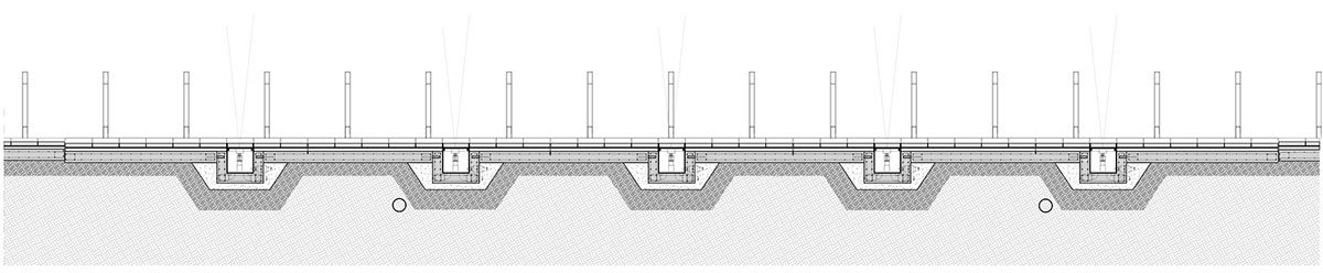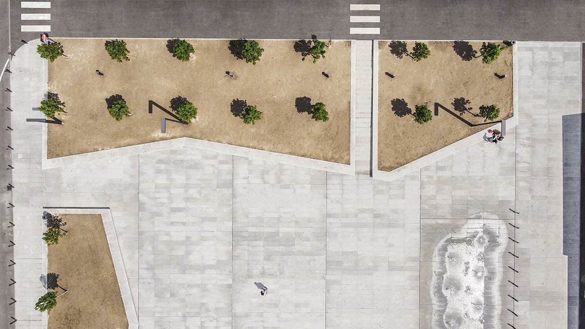All these plants, together with the conversion of the station, definitively give a new identity to the former square’s area. The pedestrian square has a pavement made of portuguese granite slabs of 132×40 cm, arranged in a grid. In the central part of the square, the soil has a lawn and an irrigation system.