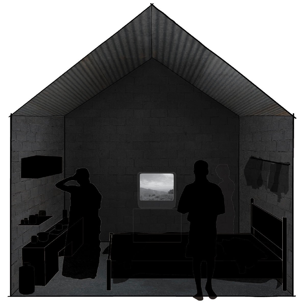 The site also had their old house, a 15 ft x 15 ft shed with concrete block walls and a sheet roof. A dark single-room block without any windows to accommodate a family of four (parents/ two children)—the only light source is the entry door and a TV inside.