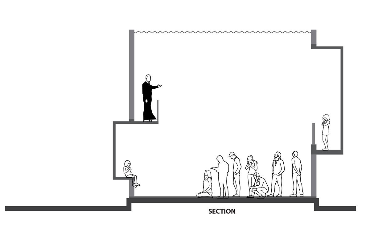 The building was designed as a single large cuboidal volume with minimum walls, bedroom and toilet as a solid block on the ground floor. The daughters’ room is a concrete block on the upper floor, with interior balconies overlooking the volume and exterior facing the greens. The inner void volume accommodates their need for religious gatherings and caters to their carpentry-related activities in the monsoons.