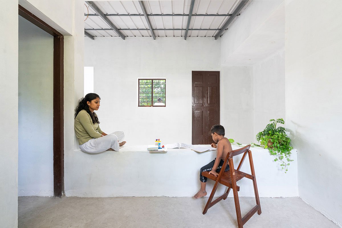 The simple flat site was located away from the town and had no vehicular access, only a walkable road along its North side. The East face had lush green vegetation and paddy fields beyond it. Unlike all the other houses around, which faced the 4 feet walking track, “the home leftover” was designed facing this greenery (east) rather than the road.