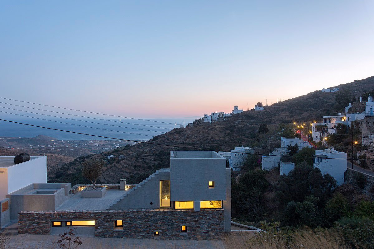 Excerpt: A Touch of New, designed by the architectural firm Aristides Dallas Architects, is a home inspired by the traditional architecture of Tinos. Having adopted the subtractive approach and sought for the minimum intervention possible in the overall landscape, the architectural proposal, contemporary yet critically traditional, consists of the harmonic integration of a cube made of fare face concrete hovering over the existing stone mass.