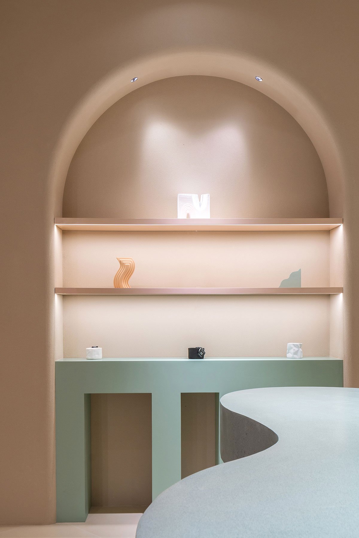Excerpt: aaddd Beauty Lifestyle Collection Store by SLT Design is an interior design project that takes “cloud” as the dimension quadrant of the overall concept. The softness and uncertainty of the cloud are extracted as design elements to convey a quiet and warm spatial atmosphere. At the same time, the free stretch curves and elegant colors in the space express the diversity of beauty in a concrete and immersive way.