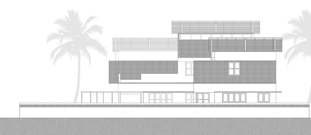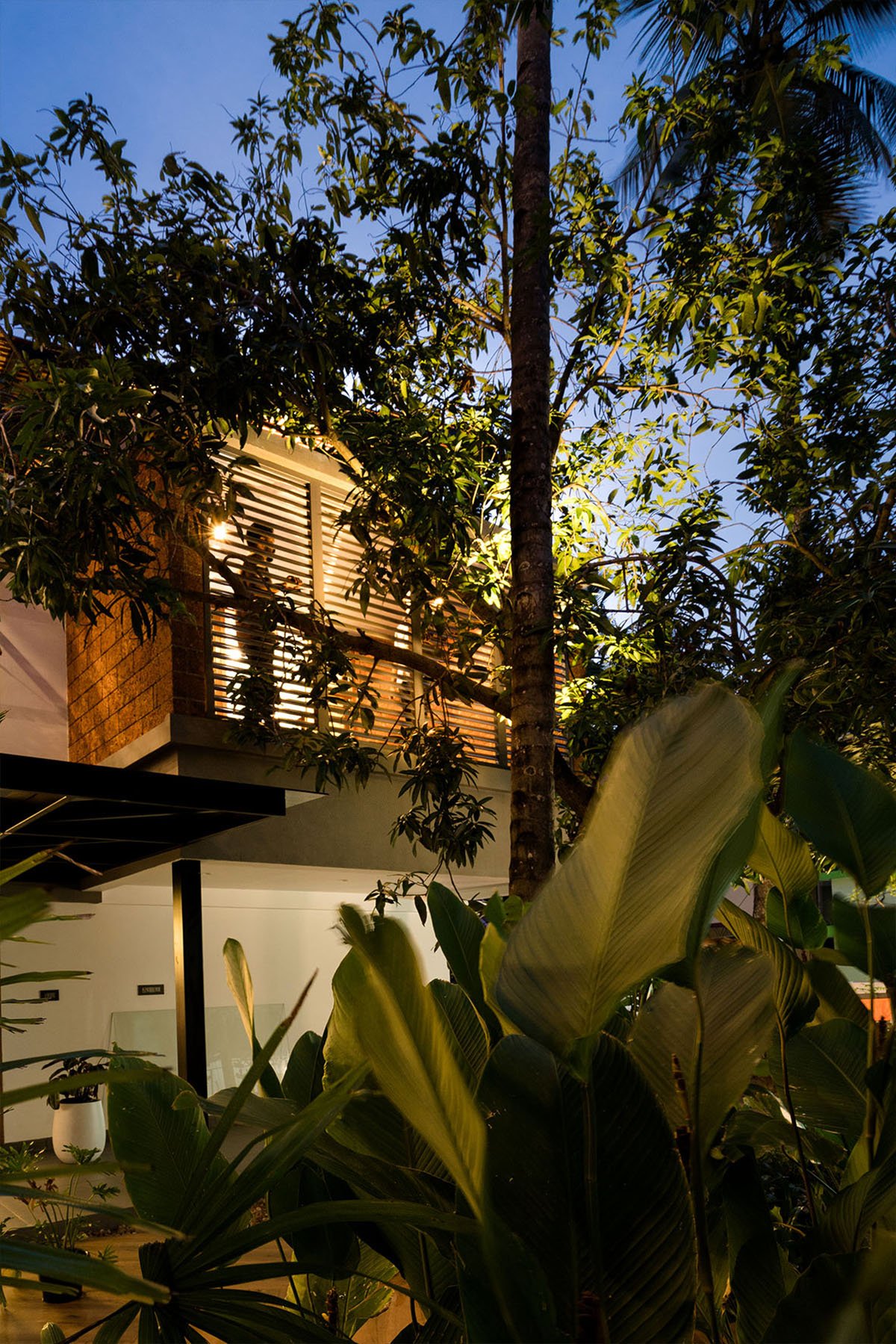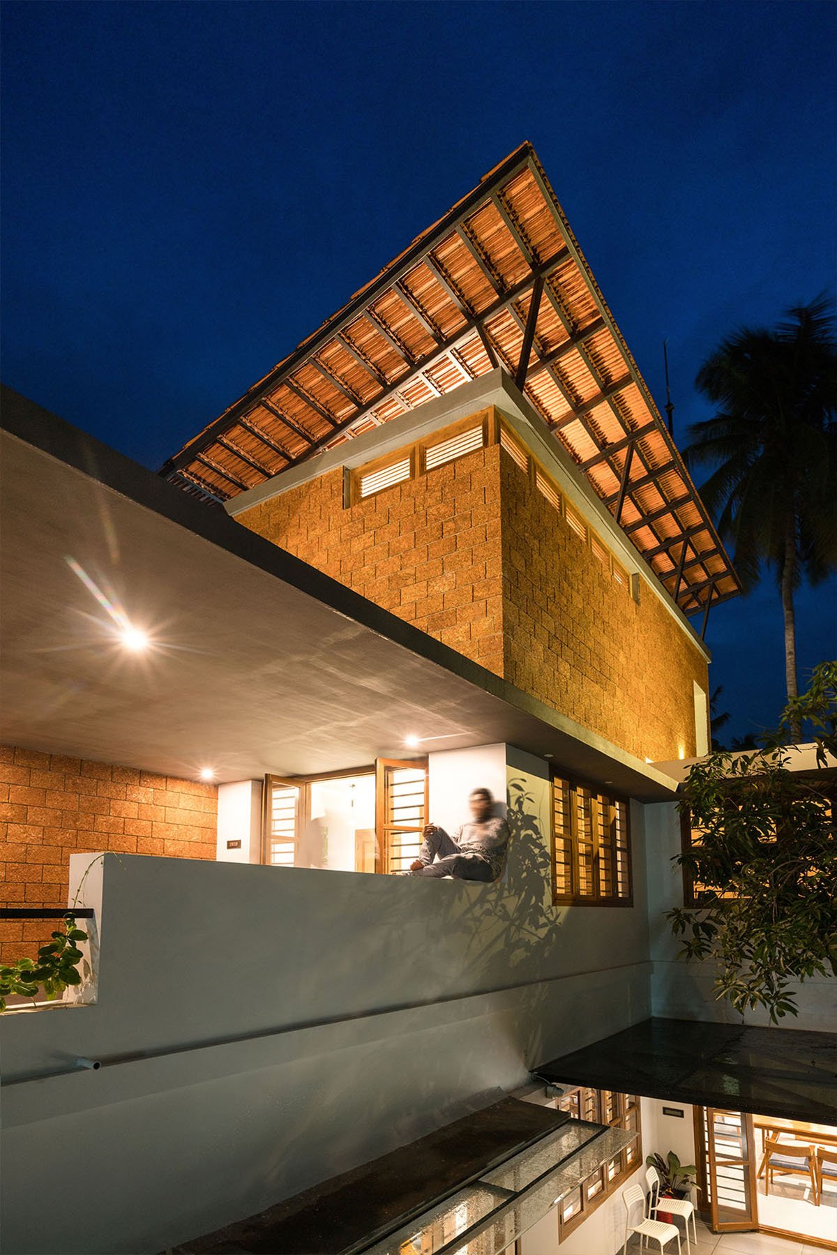 [Text as submitted by architect] The 15-cent site with an existing house, a warehouse bounded by numerous fruit trees, is located only a kilometre away from Kollam beach, Kerala. Nested in a quiet neighbourhood with lush green landscape the client desired to have a house that seamlessly blends with the surroundings. Adjacency to the sea, coupled with the humid climatic conditions of the region, encouraged us to adhere to an open plan. The vision was to design an energy-efficient house that would benefit from natural phenomena like cross ventilation, passive cooling and day lighting. Thereby, the plan and volume of the spaces were carefully worked out in order to improve the efficiency of the built spaces.