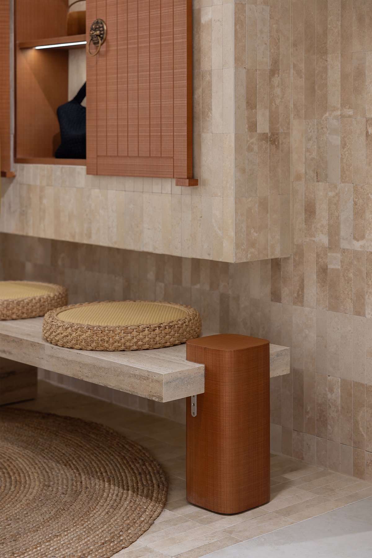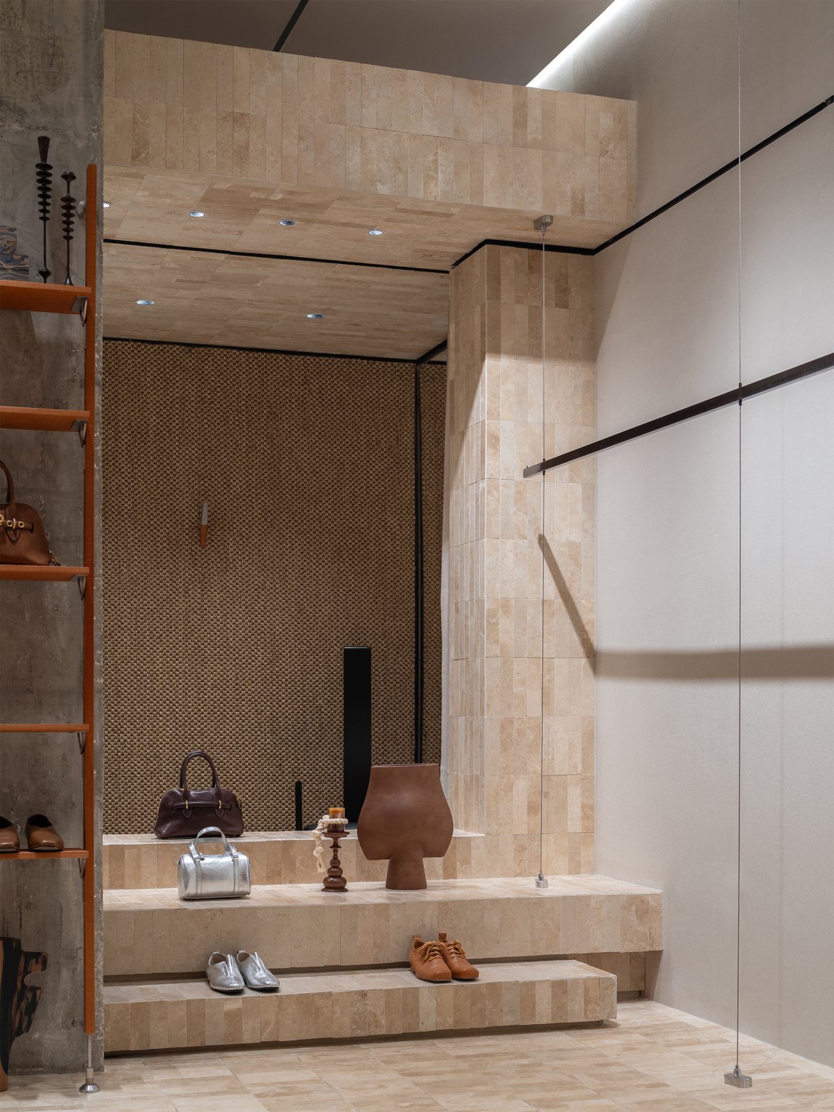 Form in Resonance, Mind in Stillness: An interplay of stone, wood, and metal imbues the space with softness and untamed beauty, as if organically grown from the building itself. This material language breaks the boundaries of physical space, expanding display functionality, creating visual contrast, and defining the space’s spiritual core.