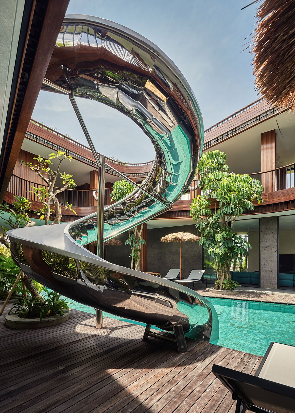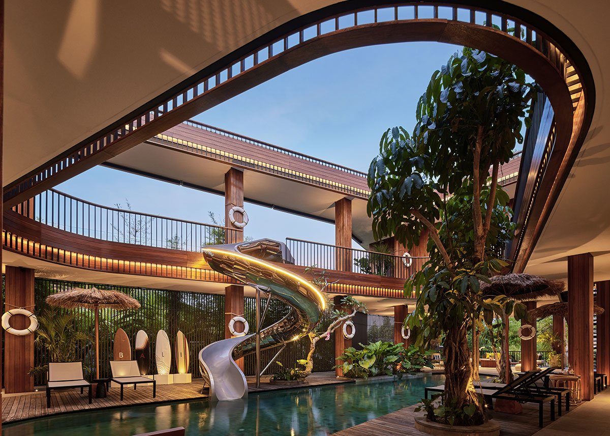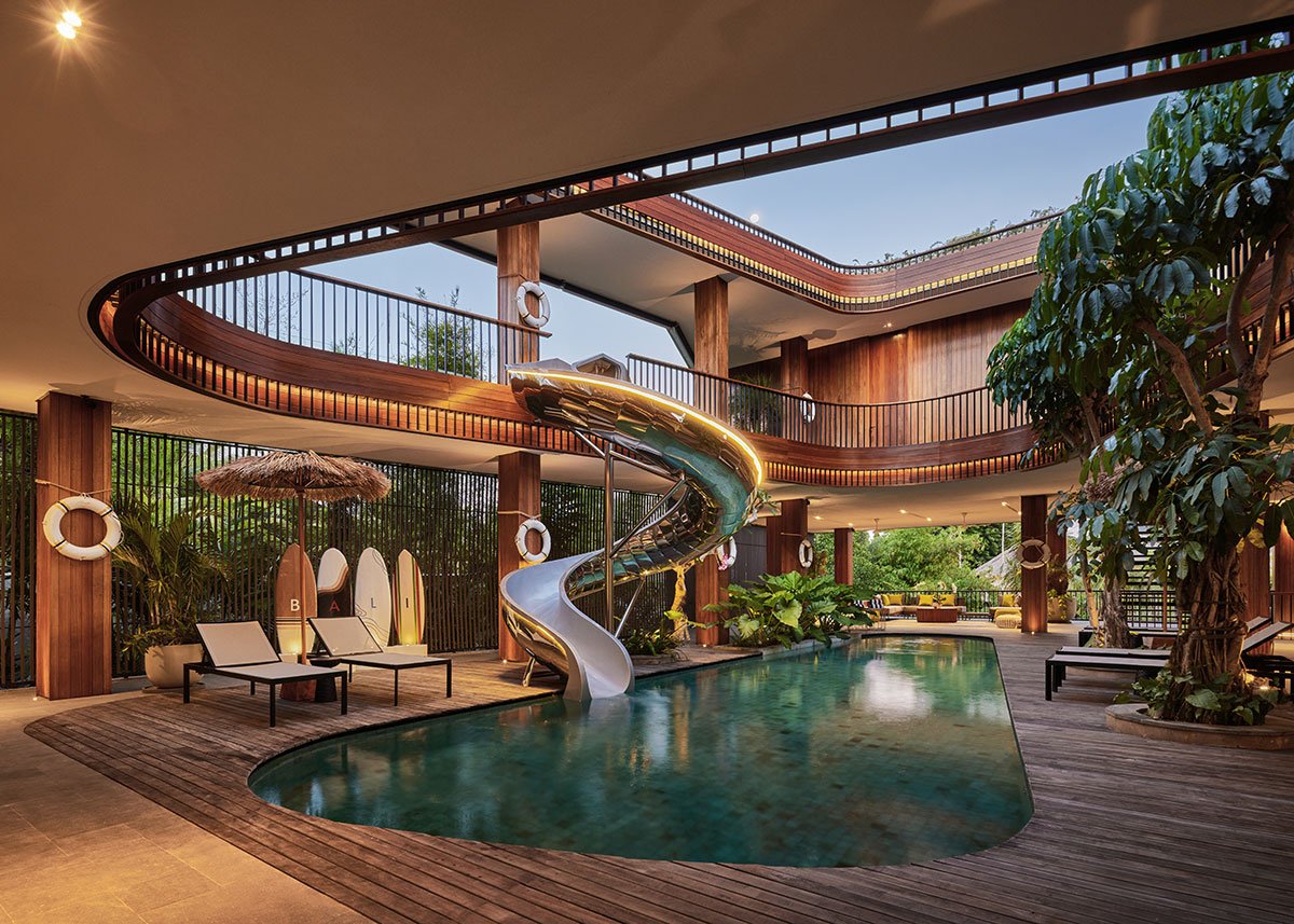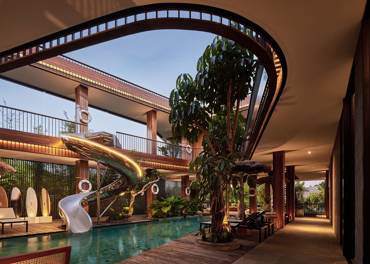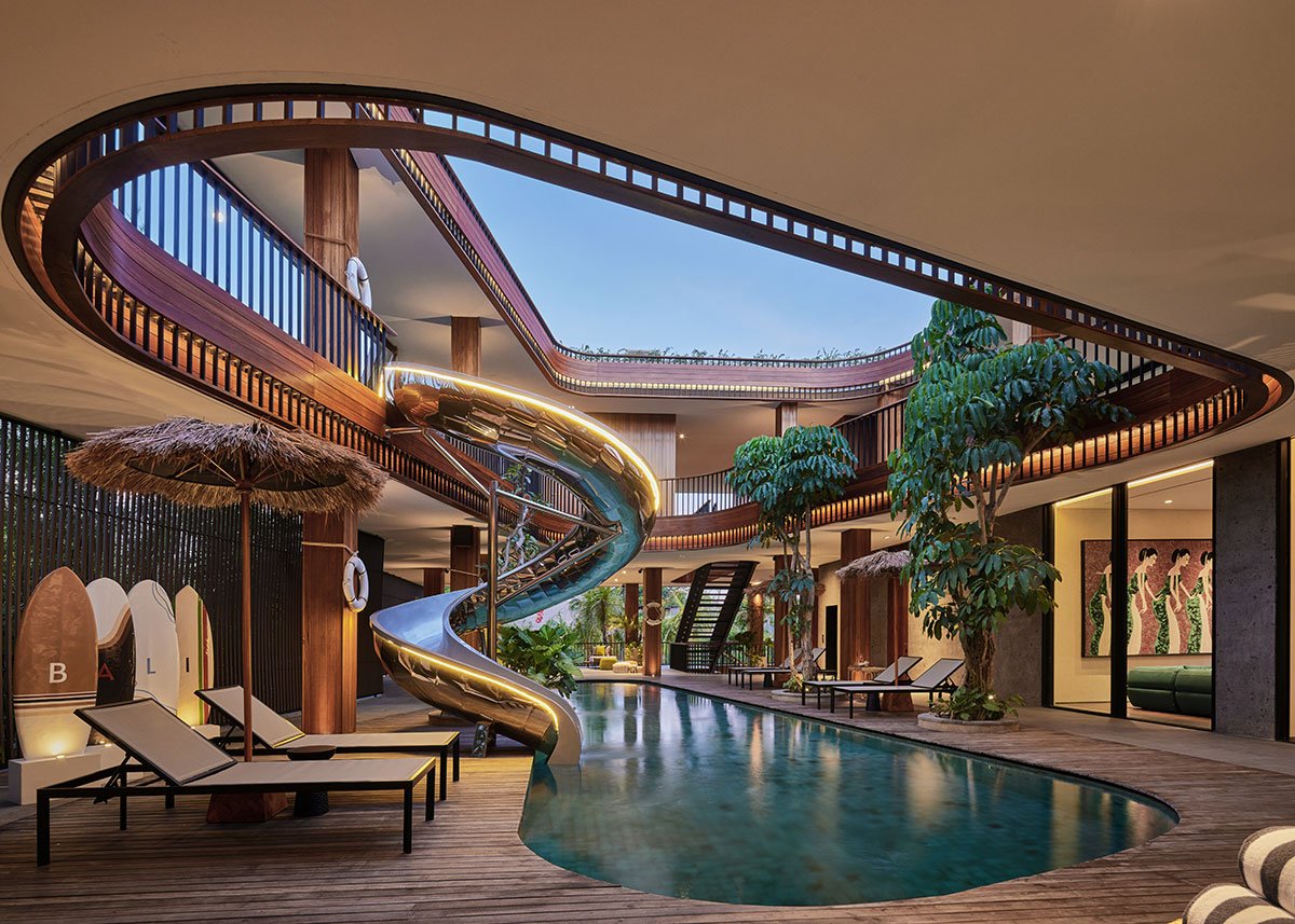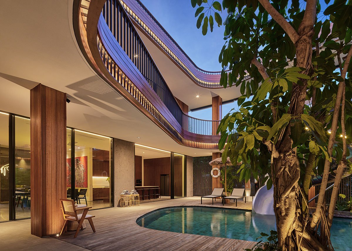 Excerpt: Akashi Residence by Alexis Dornier is designed around a striking central void that invites light, air, and movement into the heart of the space. At the core of the residence is a sculptural slide, symbolizing playfulness and creativity. The flowing forms and open layout foster a sense of continuous motion, while the integration of natural materials connects the home to its tropical surroundings.