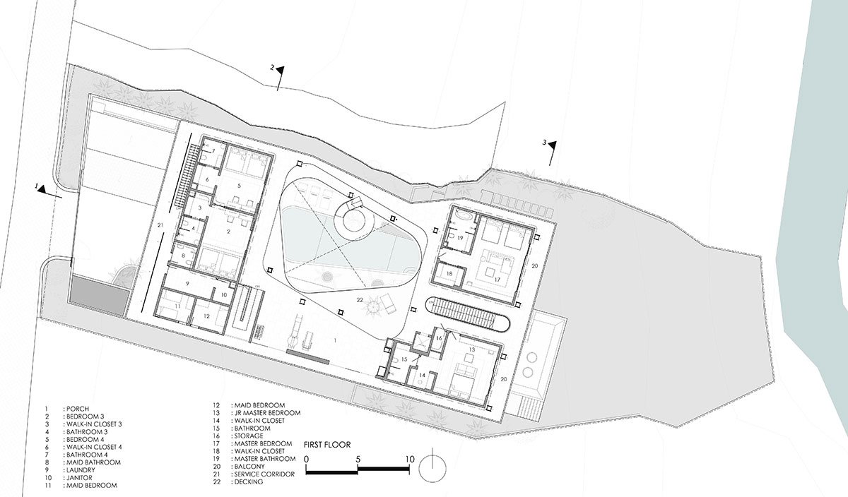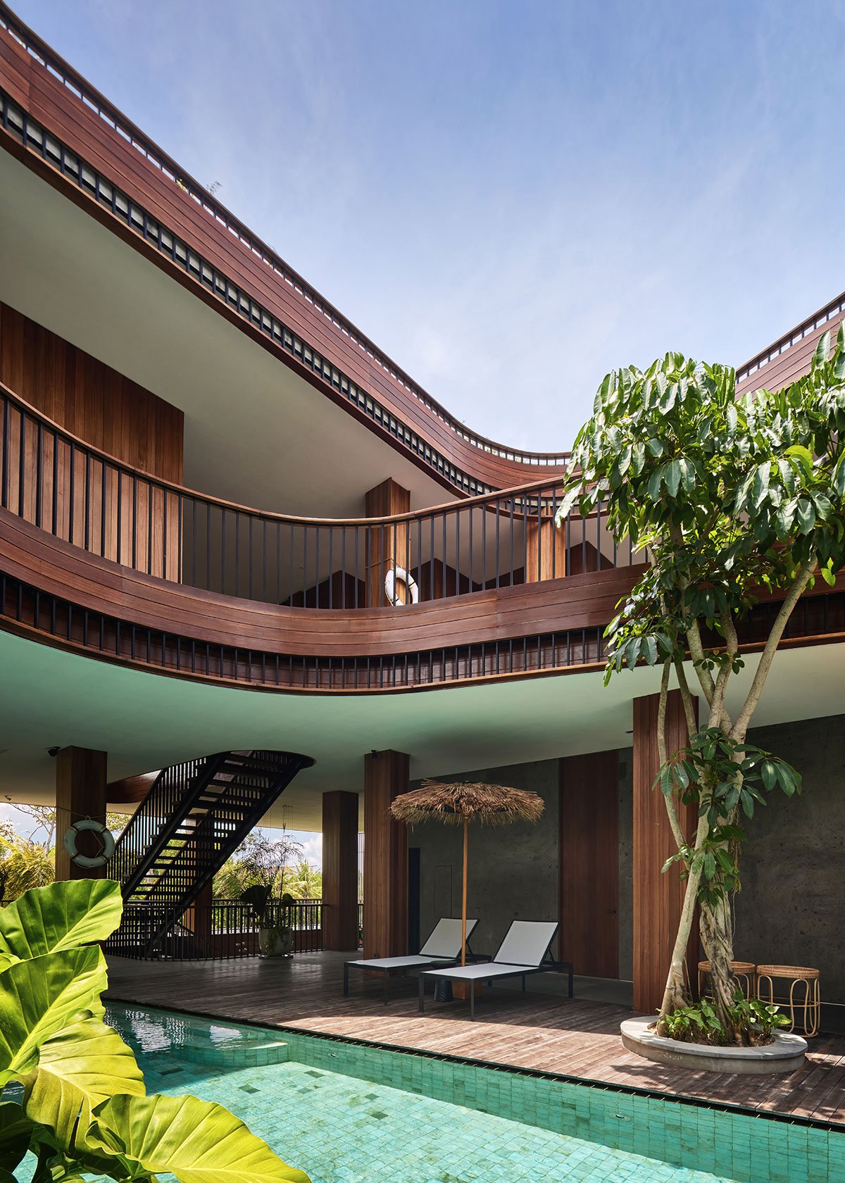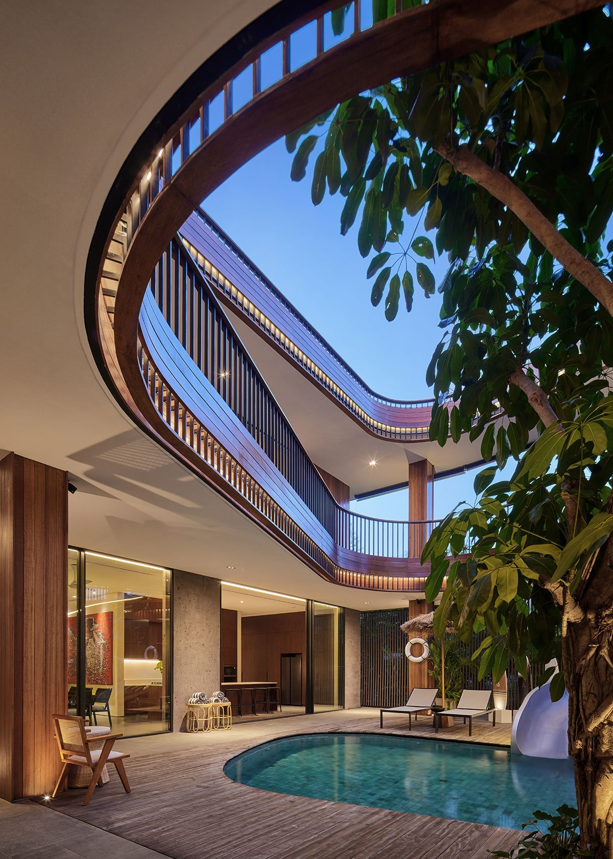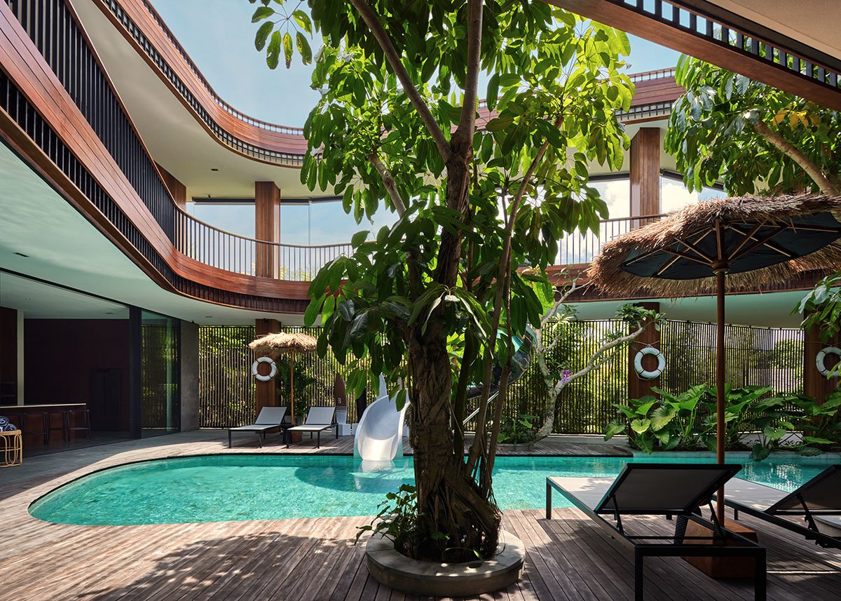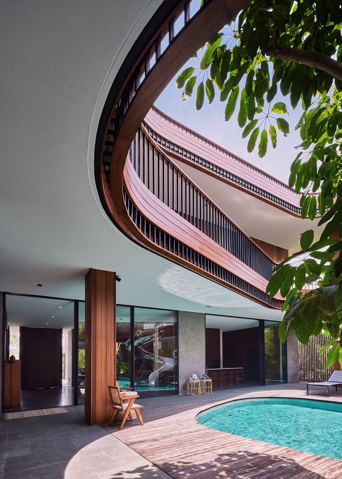 Excerpt: Akashi Residence by Alexis Dornier is designed around a striking central void that invites light, air, and movement into the heart of the space. At the core of the residence is a sculptural slide, symbolizing playfulness and creativity. The flowing forms and open layout foster a sense of continuous motion, while the integration of natural materials connects the home to its tropical surroundings.