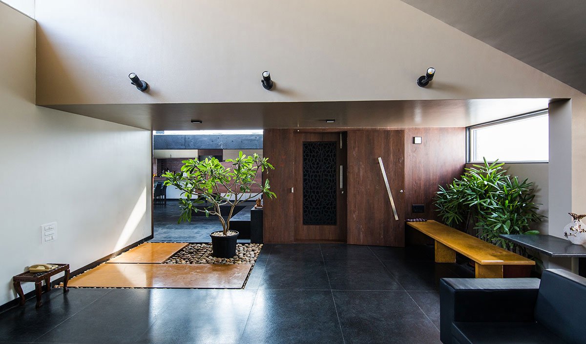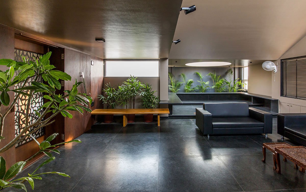 [Text as submitted by architect] A penthouse on the top floor of a seven storied building in developed area of Nashik city arrived as a brief with its own set of restrains seeking desired solution for a drama writer and chartered accountant.