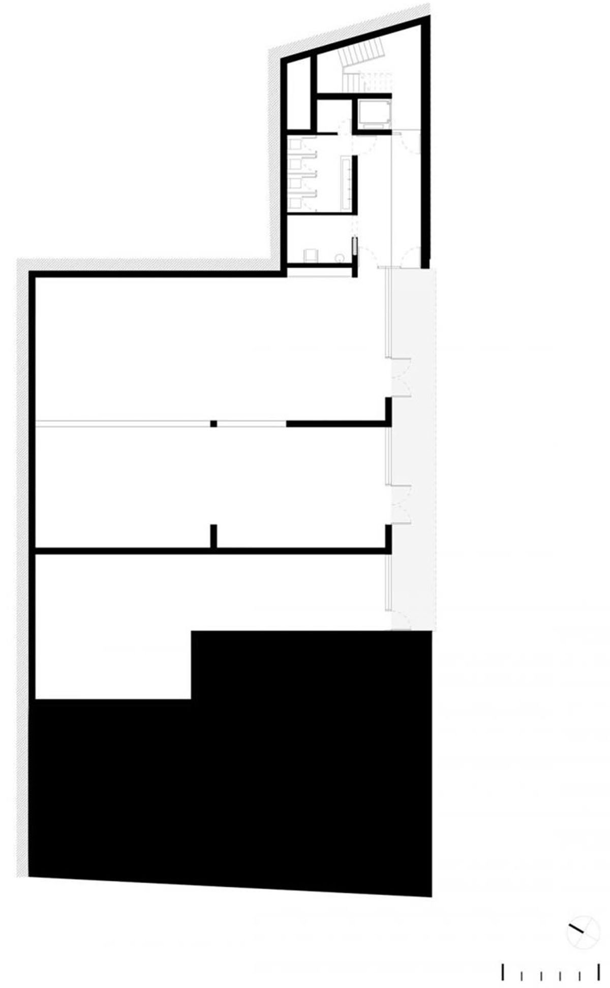 At the material level, the construction is very austerity. The simplicity of the materials used and the use of resources such as natural lighting give the space an ascetic character that seeks the essential. The volume that recalls the old hermitage is executed in cyclopean concrete with the recovery of the natural stone existing on the site. The chiseled finish of this body is finished, in the traditional way, with lime. The white of the lime contrasts with the ochre color used in the new volume, which is also built-in concrete, mass-stained, and bush-hammered with different intensities.