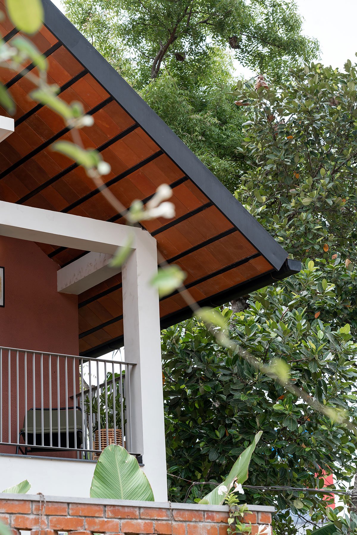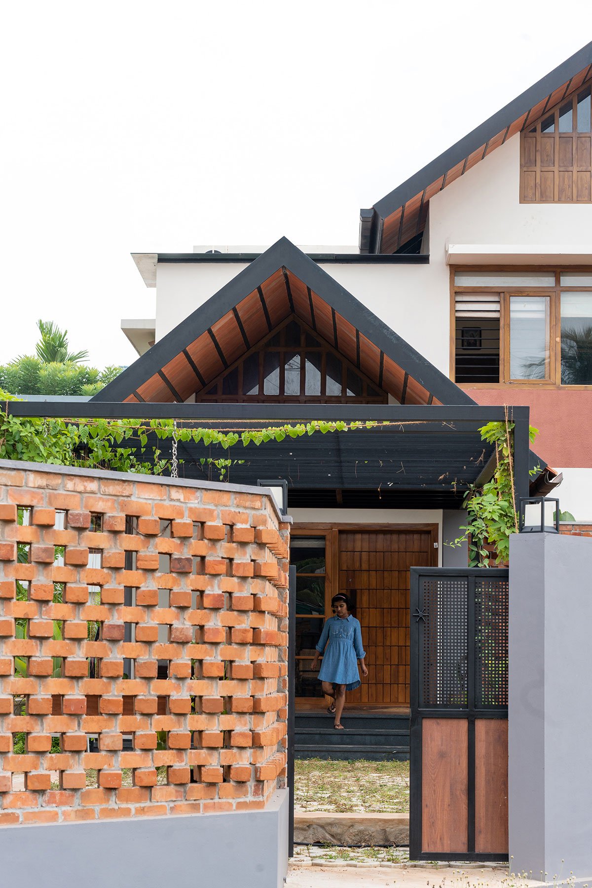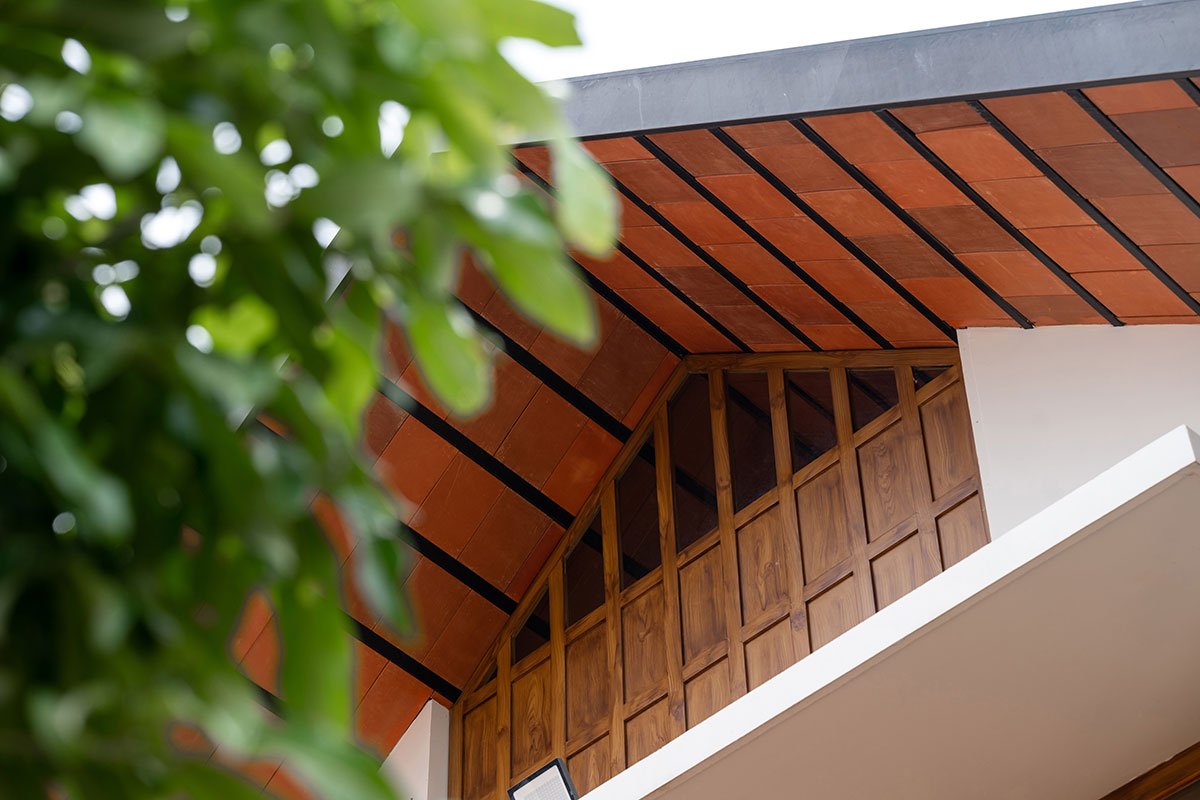 The architecture style, which is a contemporary blend of traditional Kerala architecture, blends well with the landscape setting. A terracotta sloping roof, exposed brick pseudo walls, and earthy hues complement the tropical landscape around them. The pseudo walls, the entrance ivy, and landscape inserts complete the buffer planned from the highway.