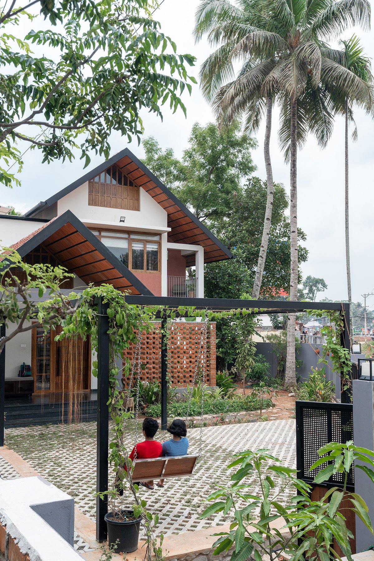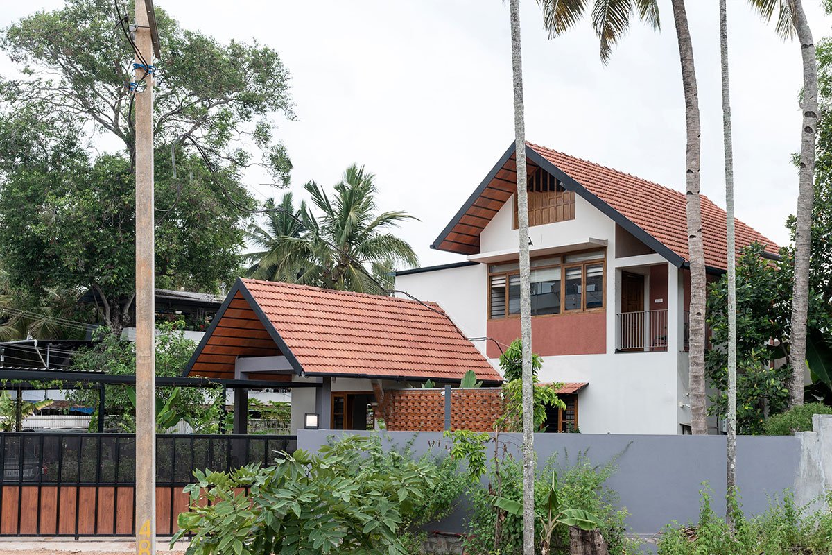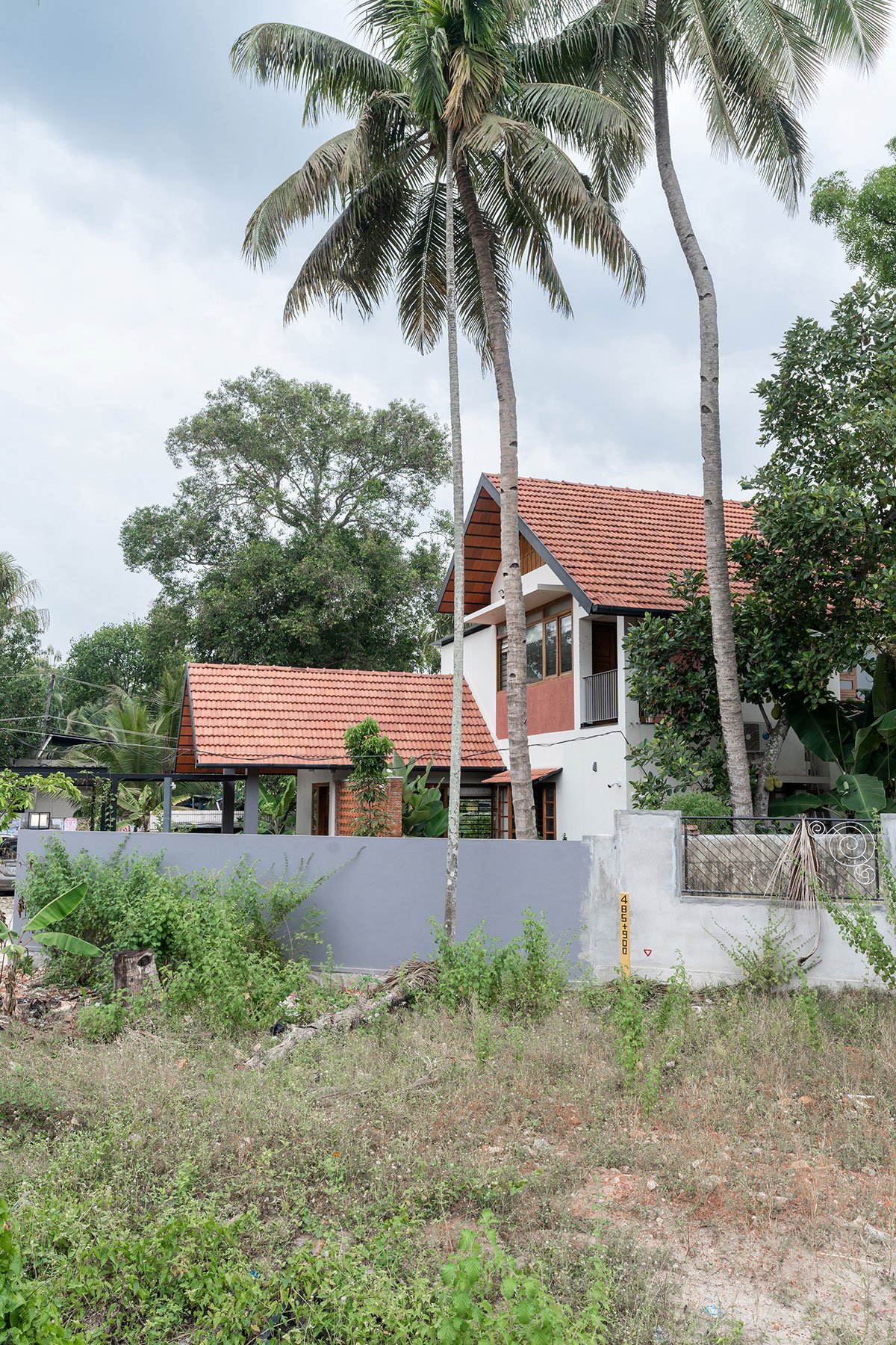 [Text as submitted by architect] The site is located along a bustling highway on the urban fringes of Kollam, Kerala. Considering the impacts of the highway, the idea was to set the house in a tropical niche. The house was zoned towards the farther end of the site, thus ensuring sufficient front yard space to accommodate the landscape inserts.