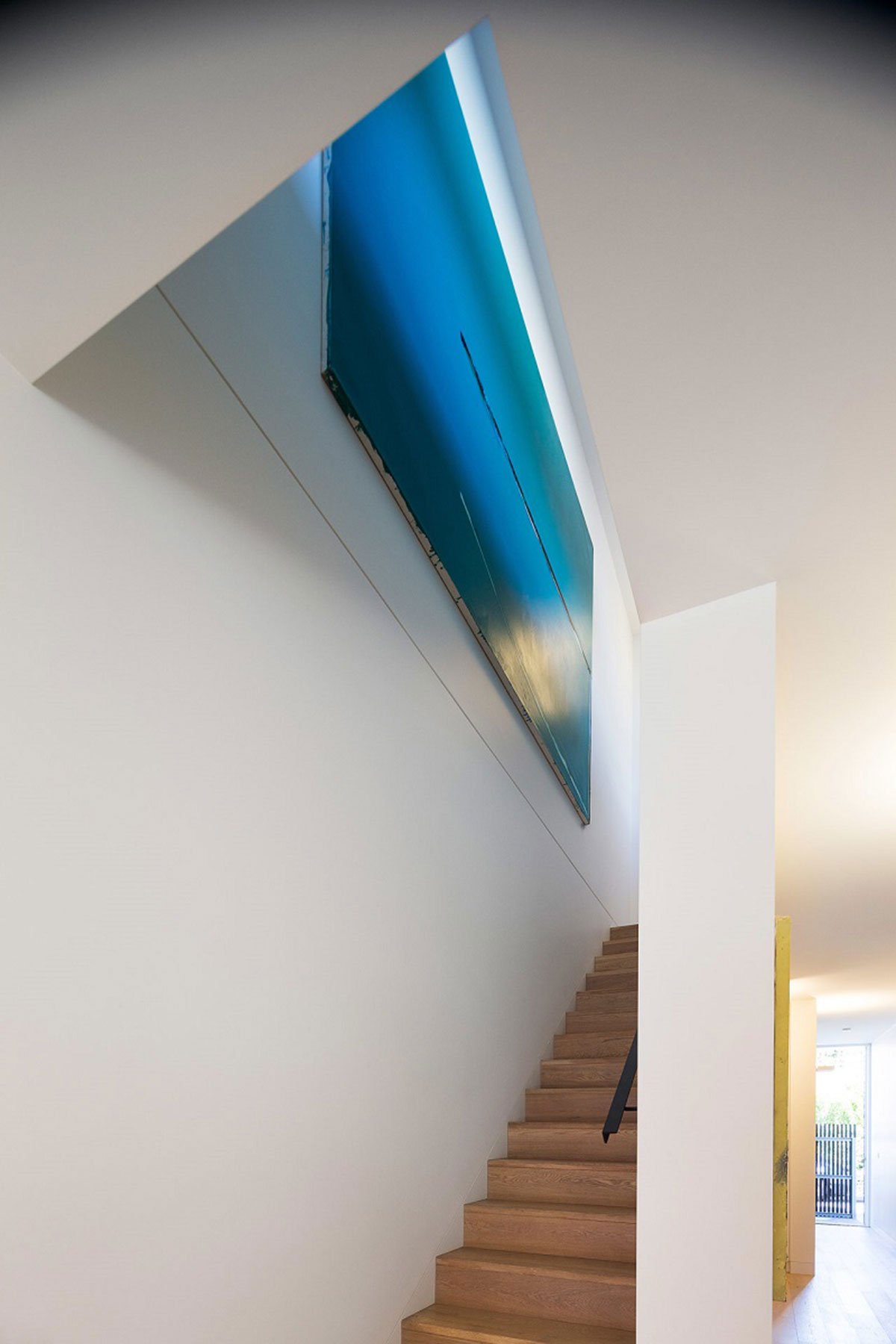 High solid balustrades afford visual and acoustic protection while deeply recessed windows and integrated balconies help the house to read as a solid form. The use of voids and cut-outs allow glimpses into some of these protected spaces while still allowing for a high level of privacy to the first floor.