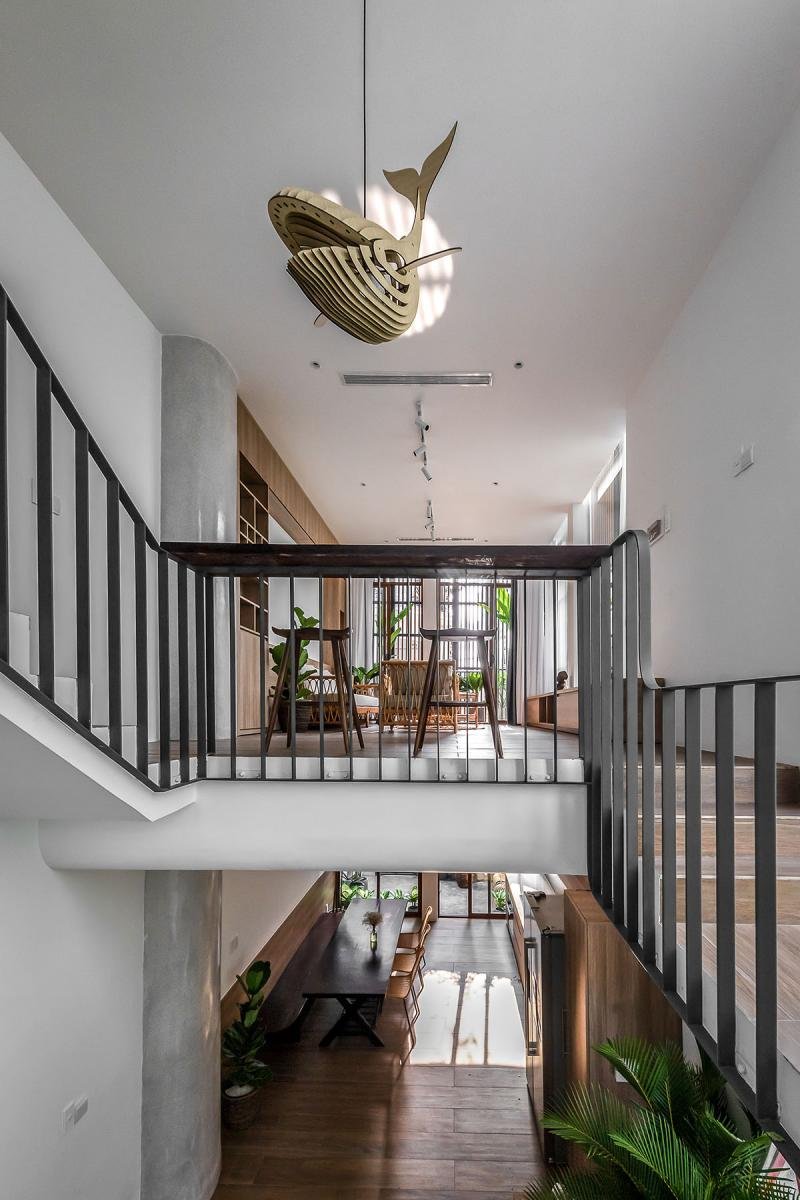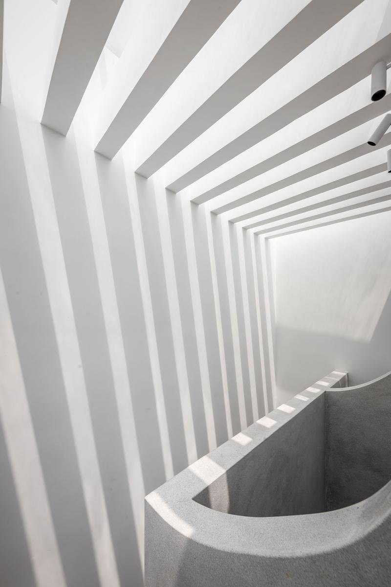 The house is located in a small alley, the distance from the opposite house is very much, so the shading system helps the house get light and wind, but still private, not disturbed by the opposite houses.