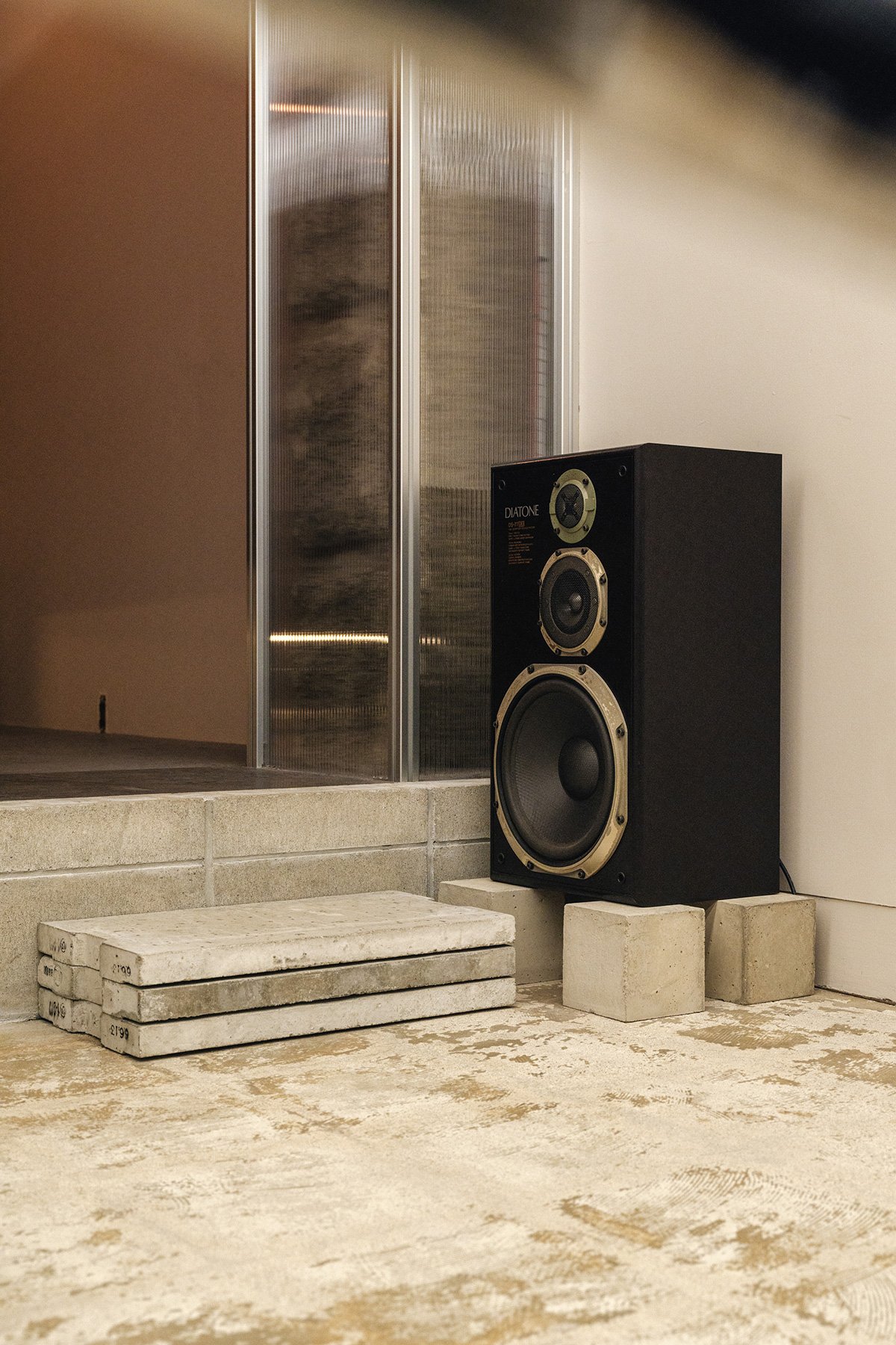 The interior is composed of elements not defined by fixed functions, but by their raw materiality and simple forms. These components exist individually, without explicit purpose, but when combined, they form a whole—like pieces of a puzzle coming together to fulfill specific needs.