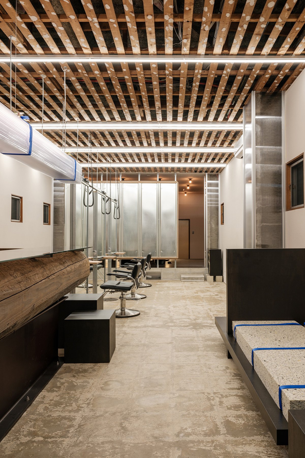 This space was designed for a stylist whose approach to hair is free from convention—shaped by a wide range of interests and a fearless attitude toward experimentation. We began by asking: what kind of environment best reflects such an evolving and expressive style?