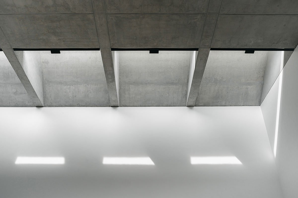 Skylights punctuate the roof, introducing soft, diffused daylight into the double-height weaving space and gallery. This design approach eliminates harsh shadows and direct glare, ensuring an atmosphere that is both luminous and serene. While maintaining a strong architectural presence externally, the interiors remain bathed in gentle, natural light.